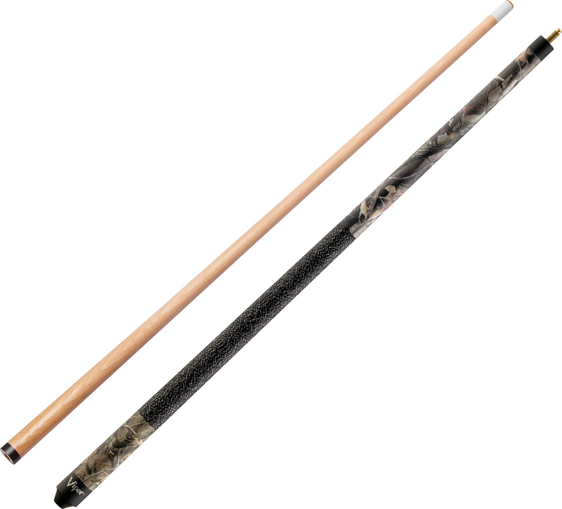 Amazon.com This Viper Signature Billiards Cue features trademarked Realtree camouflage print and exclusive graphics, for a distinctive look in the pool room. The cue is built for quality with a maple shaft and forearm, a leather tip, ABS joints, and a nylon wrap. . Built to last, the cue carries a three year limited warranty. Specifications: Tip: Leather 13-millimeter Ferrule: Fiber Shaft: Maple Wrap: Nylon Forearm: Maple Weight: 19oz Joint: ABS Limited three-year warranty Product Description The Viper Signature 57-Inch, 2-Piece Billiard Cue is constructed from quality hard Canadian Maple wood on the shaft. Designed with officially licensed Realtree camouflage patterns, the upscale graphics give each billiard cue a unique look. Featuring lightweight ABS joints which help provide consistent feedback during play. It's available in 18-21 ounce cue weights, offering a customizable assortment. Cue weights will vary. Each billiard cue is finished off with a 13mm Le Pro leather tip, nylon wrap and a traditional rubber bumper.