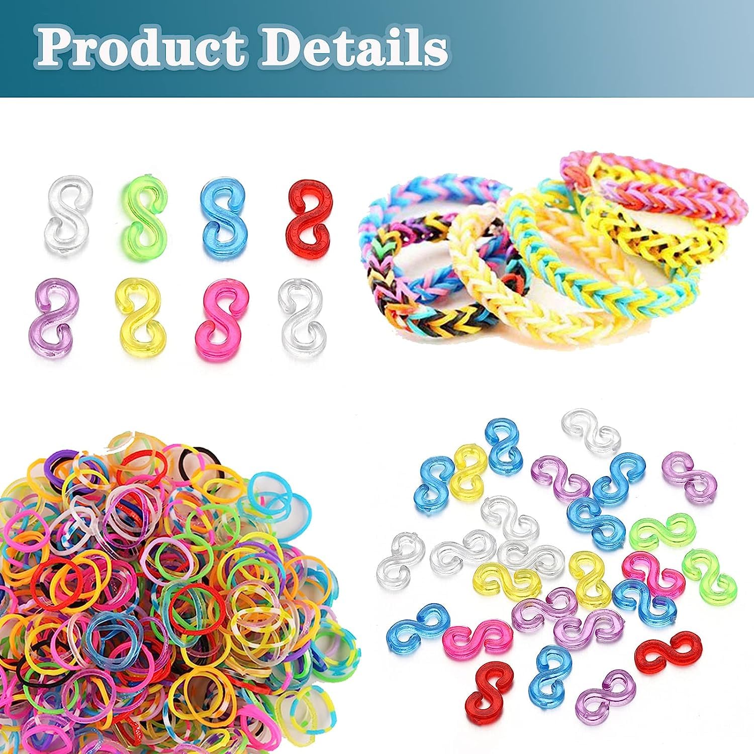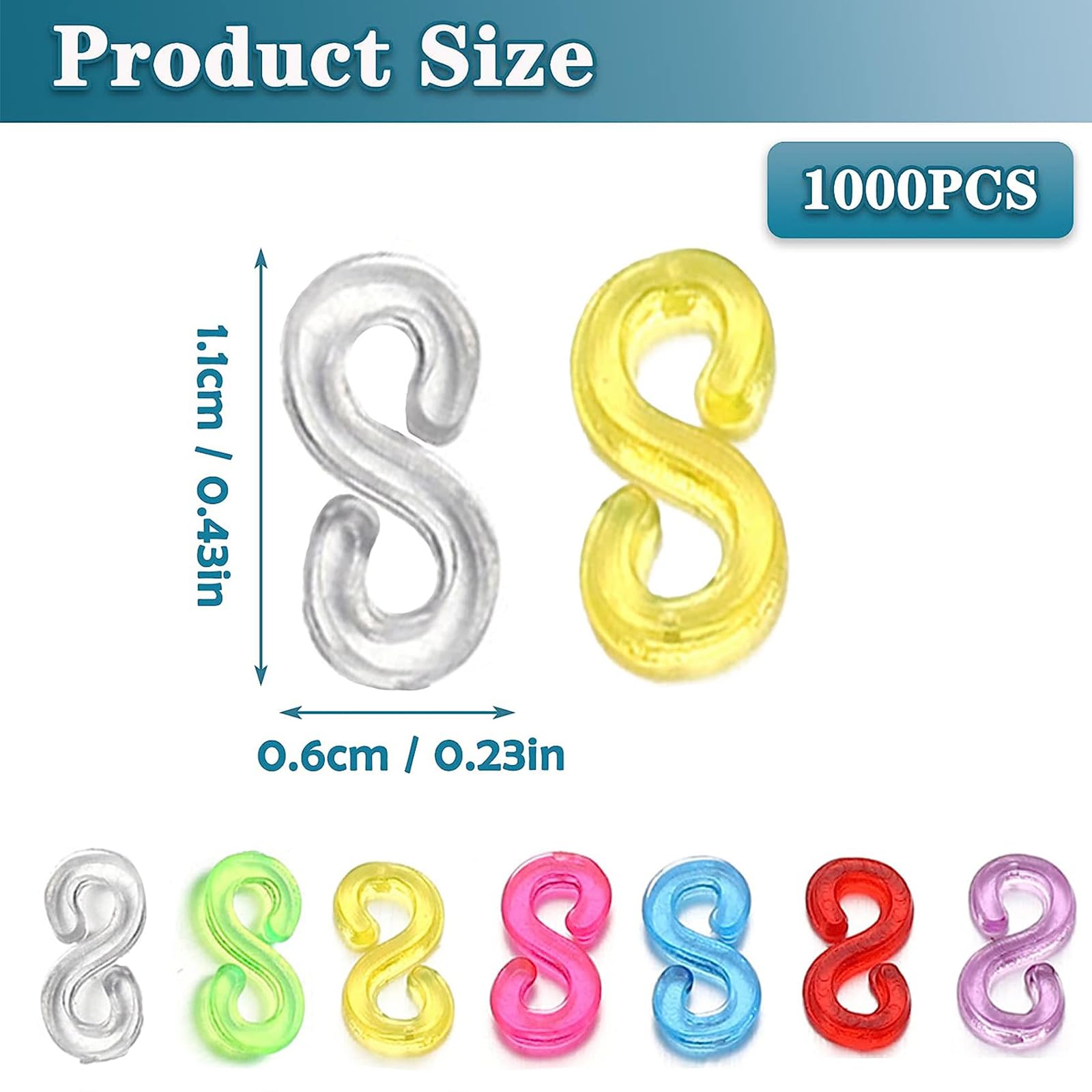 S CLIPS FOR LOOM BANDS Creative and imaginative loom Rubber Band S Clips, you can make bracelets with your family or friends and enjoy the endless fun of creating rubber band jewelry. Bring more fun to your daily life, you will love it. Use it to do different things you can imagine, there are endless possibilities for gadgets and decorative weaving crafts. GREAT FOR DIY HANDCRAFT These S Clips are great for making many wearable DIY crafts such as necklaces, bracelets, rings, charms and other ornaments. Make super fun gadgets to enrich your leisure time and give you a sense of accomplishment. QUALITY MATERIALS Loom Rubber Band Bracelet S Clip is made of plastic material, durable, not easy to break, washable and wear-resistant, can accompany you for a long time. Easy to operate and can be used with the loom rubber band. ABUNDANT QUANTITY The package contains 1000 pieces loom S clips. Sufficient quantity to meet your various needs to make bracelets and create different DIY crafts. GIFT FOR KIDS S clips can help develop children's interest in learning, manipulative skills, imagination and creativity, promoting their hands-on or other valuable skills. It is also a popular parent-child activity that creates quality family time. Perfect for spending happy hours and a great gift for Christmas, birthdays, parties or holidays. Attention: The recommended Age Grade of the S Clips is over 4 years old.