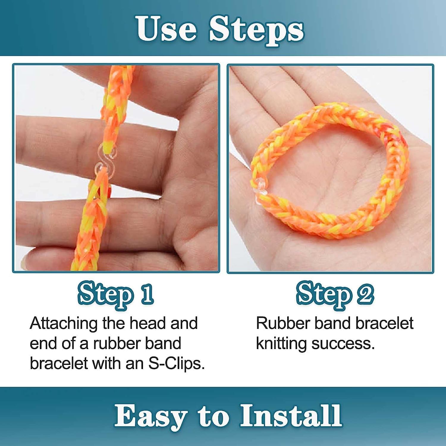 QUALITY MATERIALS ---- Loom Rubber Band Bracelet S Clip is made of plastic material, durable, not easy to break, washable and wear-resistant, can accompany you for a long time. Easy to operate and can be used with the loom rubber band.