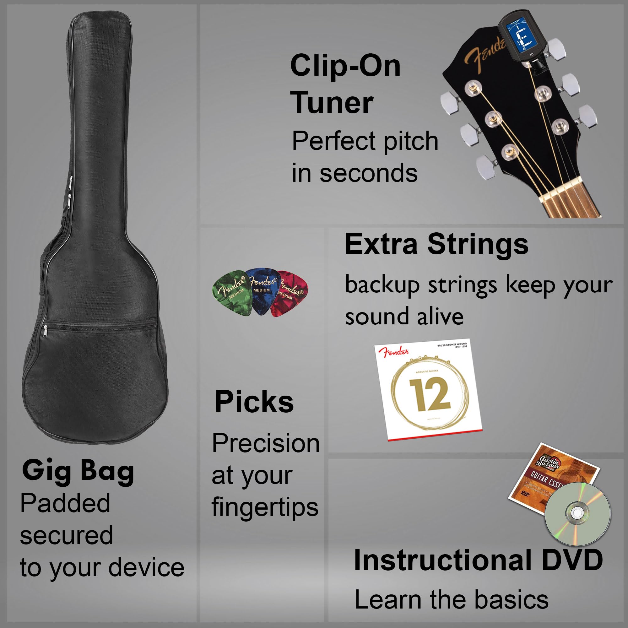 EVERYTHING IN ONE BOX: Austin Bazaar appreciates your purchase by adding essential accessories, this bundle includes a gig bag to protect your guitar during travel, a tuner to keep your instrument in tune, extra strings and picks for future use and an Austin Bazaar instructional DVD to help get tips and guidance while playing your instrument