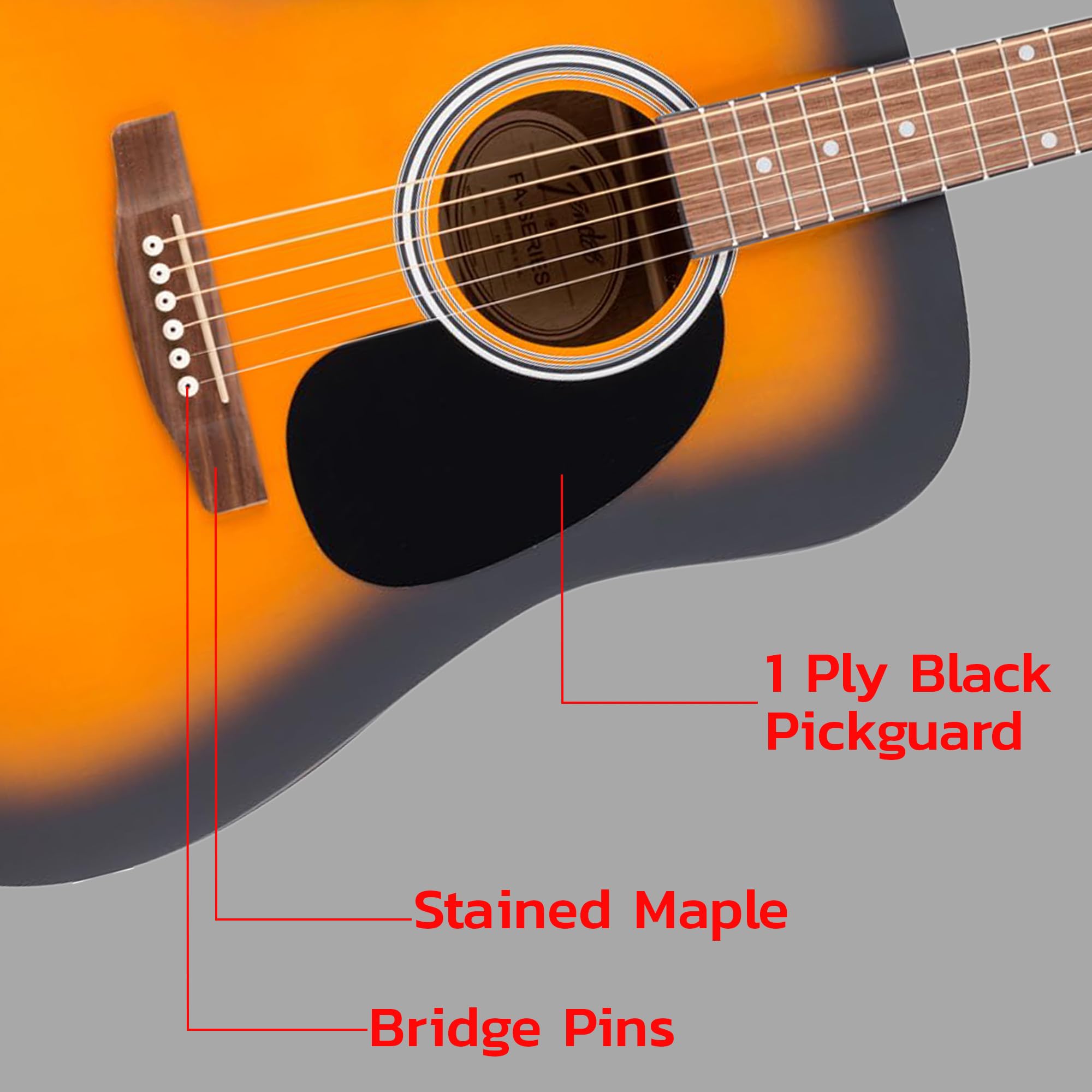 DREADNOUGHT BODY SHAPE: The Fender FA Series features a classic dreadnought body shape, renowned for its powerful projection and full-bodied tone, making it perfect for strumming and a wide range of musical styles