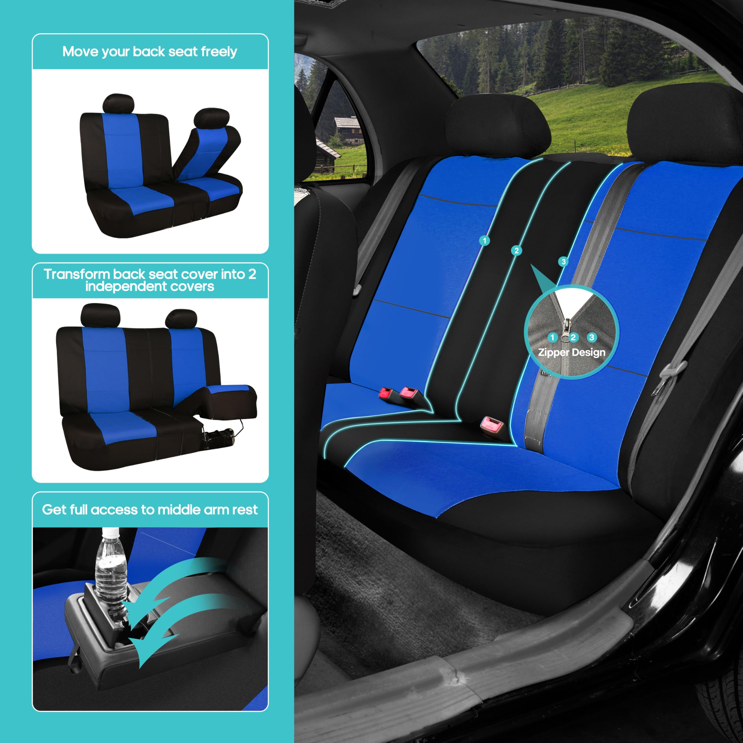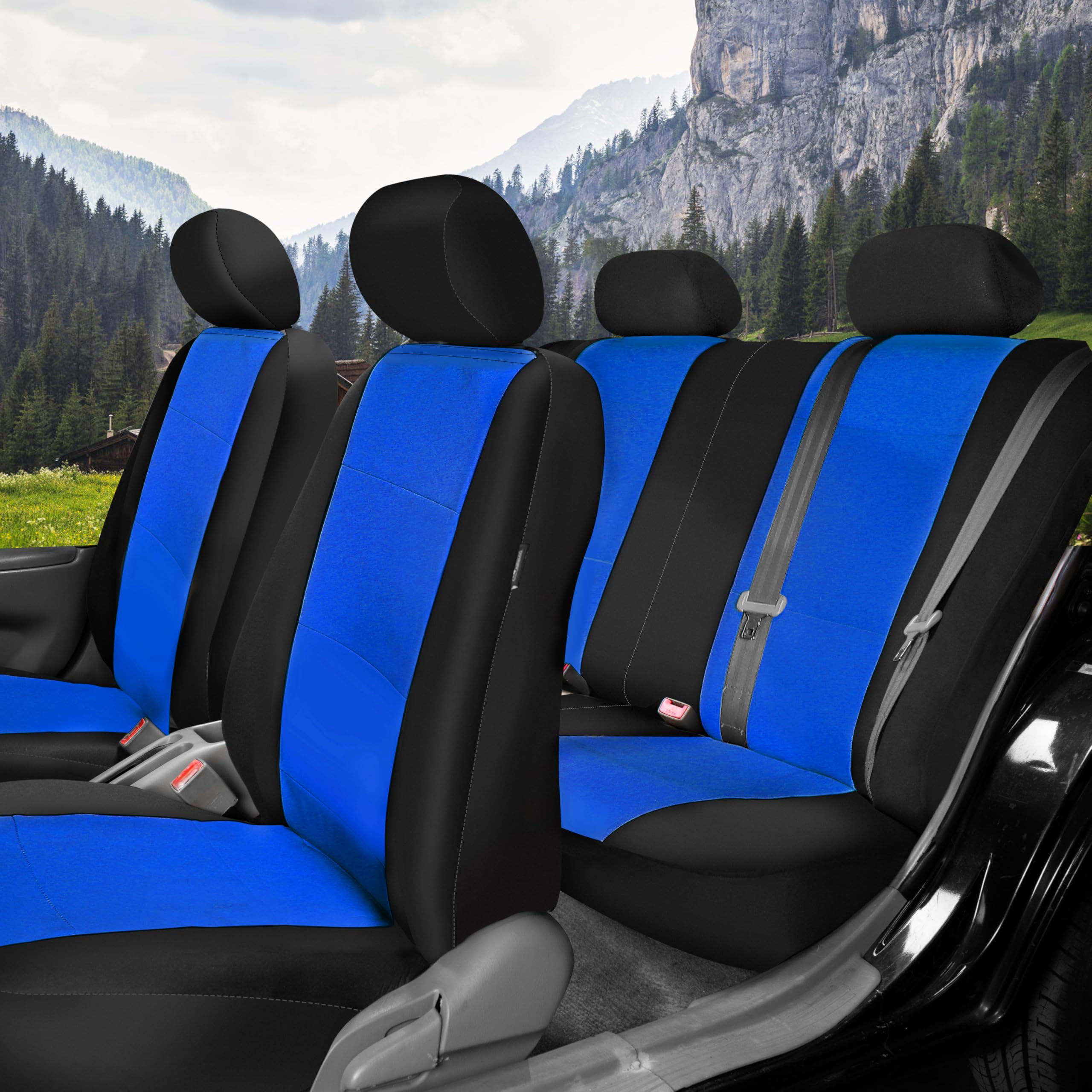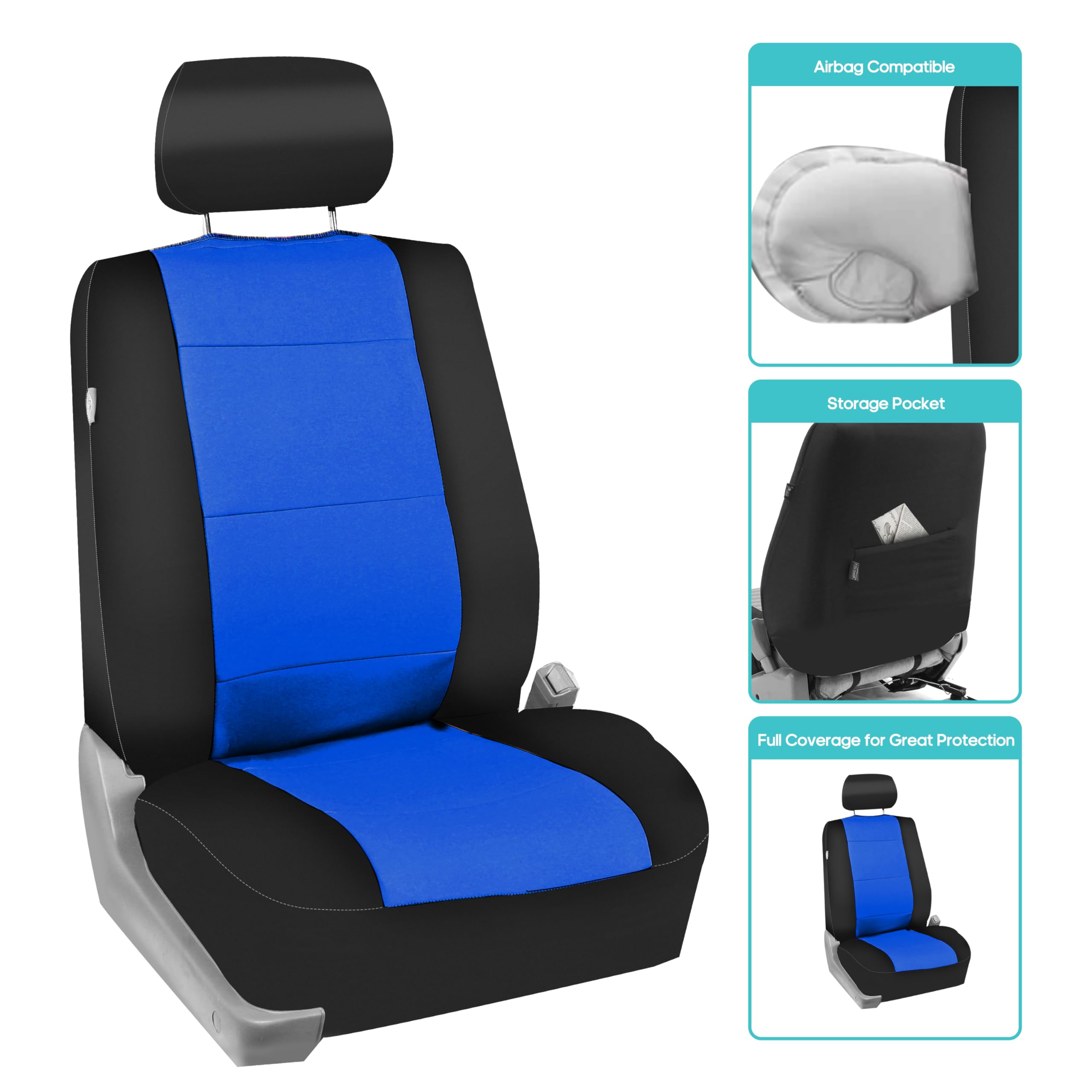 FH Group got you covered! Our full set of premium neoprene car seat covers not only provide the best protection for your car's upholstery against any type of mess but they also enhance the looks of your car's interior. No need to worry anymore about spills, stains, mud, or anything damaging your original car seats because this car seat protector got your back. This full set of car seat covers includes two front low back seat covers, which are compatible with most sedans, SUVs, and vansβ seats with removable headrests only. Our rear seat covers are fully compatible with 50/50, 40/60, or 60/40 split rear benches or longer benches. The cover features 3 zippers in the backrest AND bottom, and extra mesh pieces so you can move the rear seat freely or use the middle arm rests and get full protection. We understand messes happen, thatβs why these waterproof and washable seat covers for cars are convenient for any type of driver. We offer automotive seat covers in numerous fabrics, colors, and designs, so you can easily find the seat cover for cars that fits your style the most. We have car seat covers for women, for men and for everyone FH Group car seat covers are a great car interior accessory for your vehicle. We have it all: car seat covers for SUV, car seat covers for autos, car seat covers for vans, you name it!