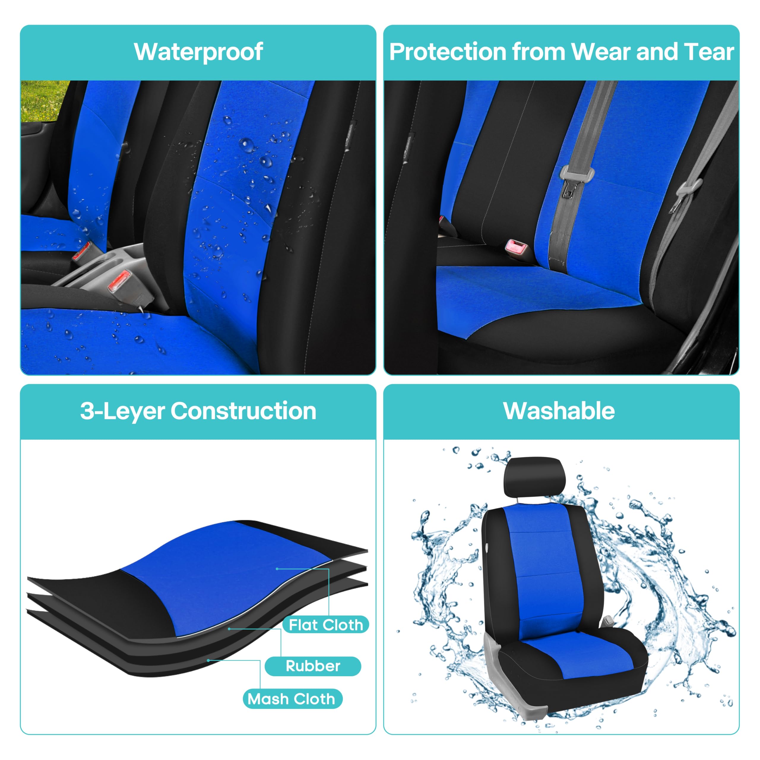 π[HIGH-QUALITY AND DURABLE MATERIALS] Our neoprene car seat covers full set is built with 3 layers of neoprene, 3mm padding and mesh fabric, making our covers a reliable and durable car seat protector.