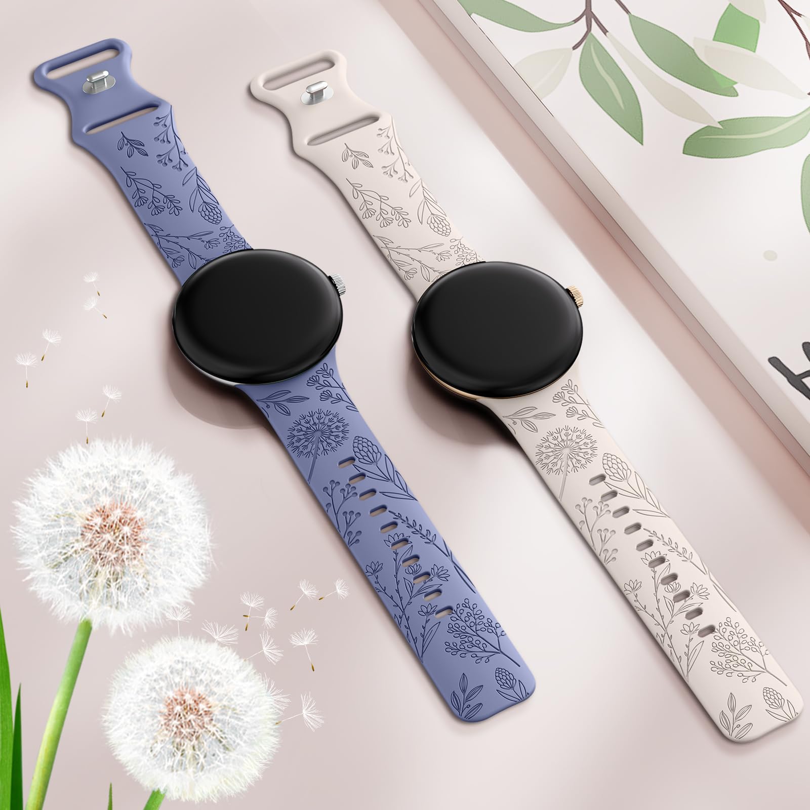 Exquisite Craftsmanship: These sports Google pixel watch 2 bands are made of skin-friendly silicone material, which is soft and comfortable. Utilizing advanced floral printing laser engraving is performed on professional equipment, soft silicone with various flower, and dandelion patterns, high definition. It does not wear off or fade over time, giving you a lightweight, flexible, youthful, and energetic feeling
