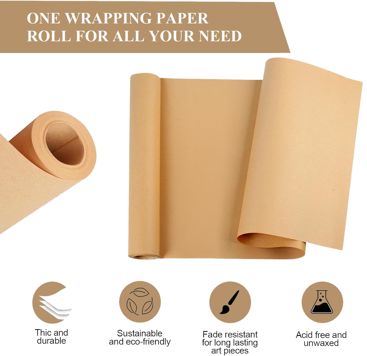 Including 1 roll of kraft paper roll, 30 inches wide and 100 feet long, made of natural virgin pulps - 100% recycled material.