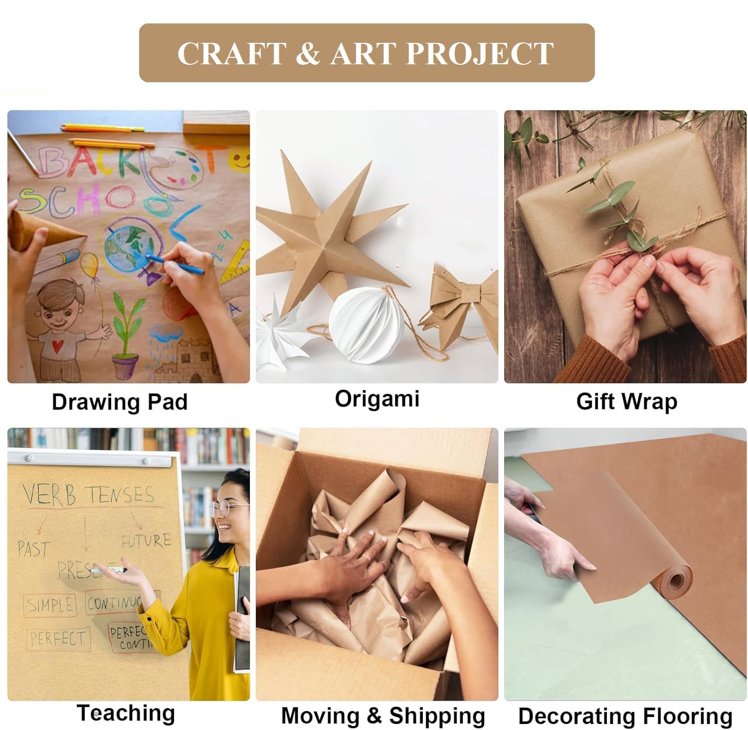Multiple Use: packaging paper, floor covering paper, art paper roll, craft paper roll, mailing paper, table runner, bulletin board paper, book wrapping paper, party banner paper.