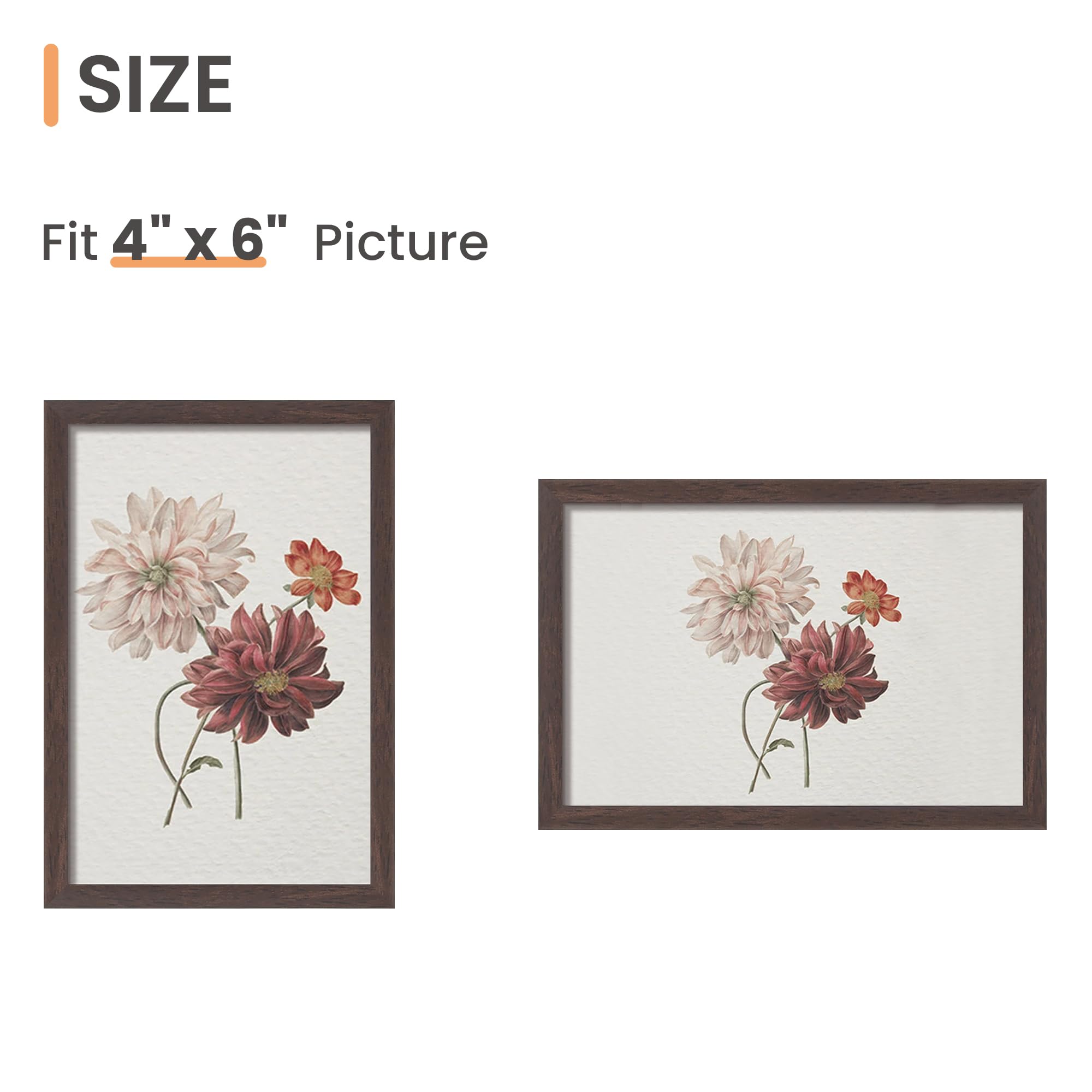 Size: One wall brown photo frame fits 4x6 photo without mat, can be hung horizontally or vertically.