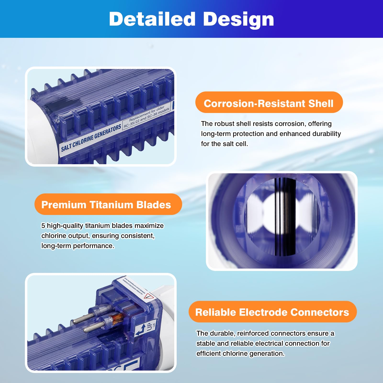 PPC1 Salt Cell for Autopilot Pool Pilot Digital Chlorine Generator, Replaces Old Cell RC-5, RC-35/22, SC-36, AP-150, Salt Cell W/ 5 Blades,Up to 28,000 Gallons