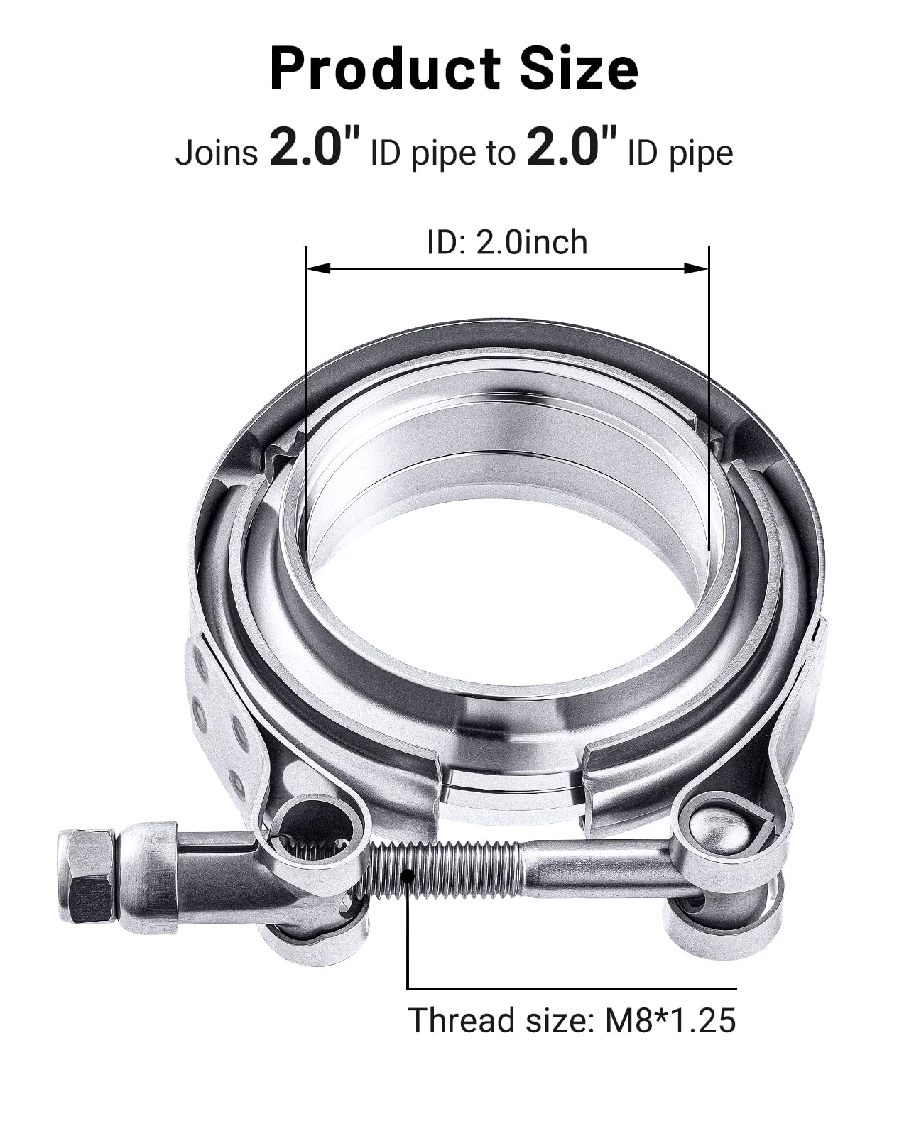 [Size] Joins male/female flange 2.0" ID to 2.0" OD pipe. T-Bolt thread size: M8*1.25.