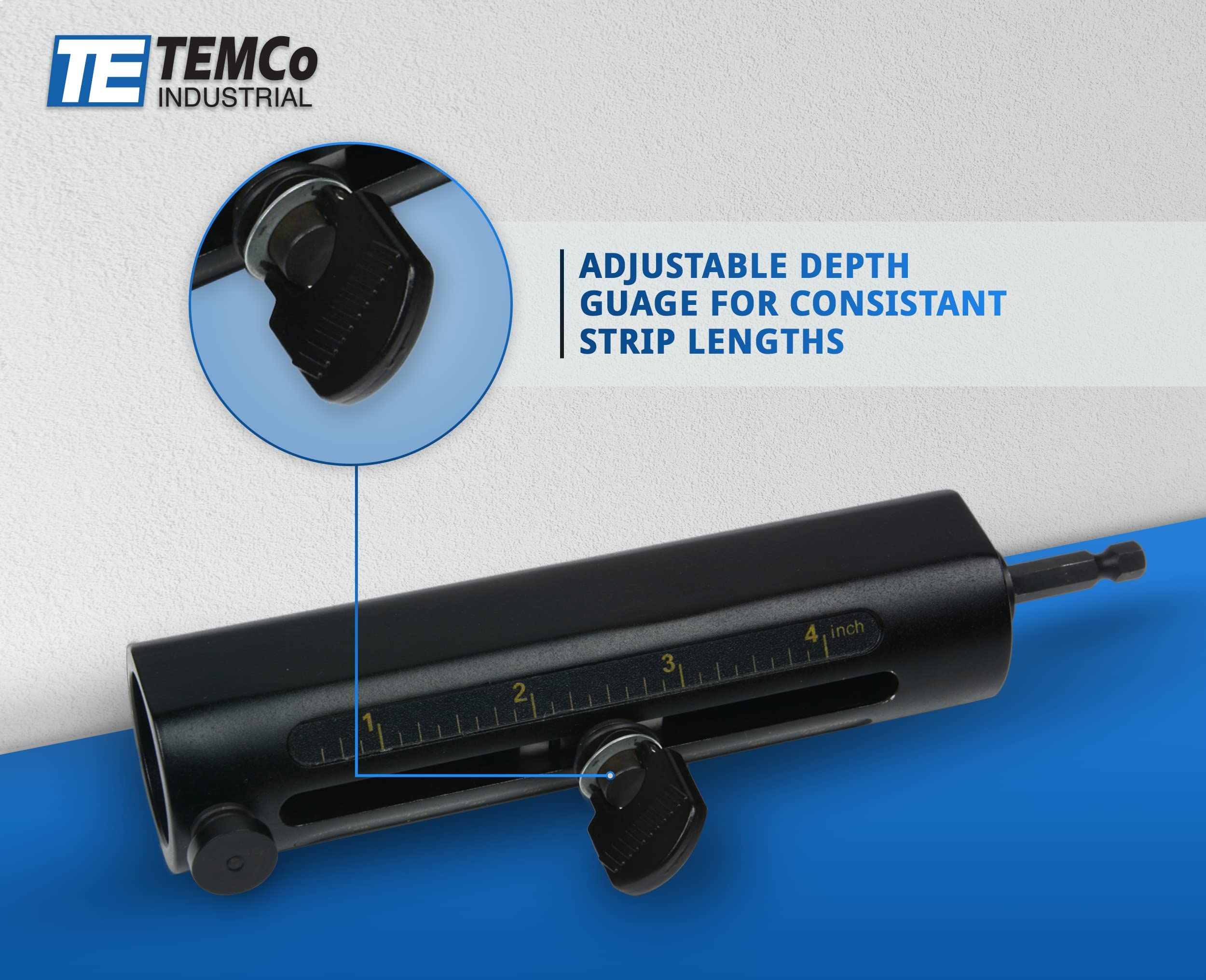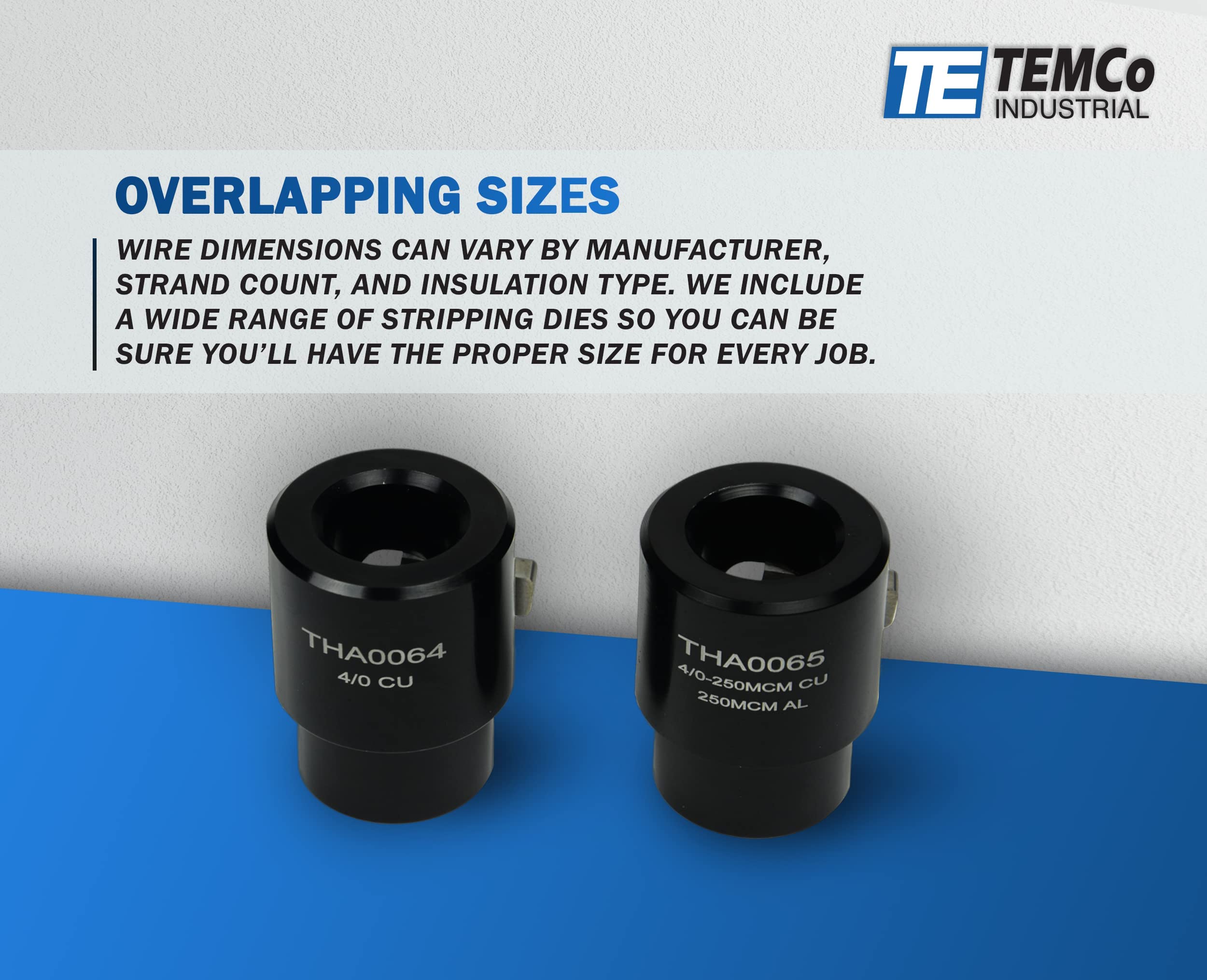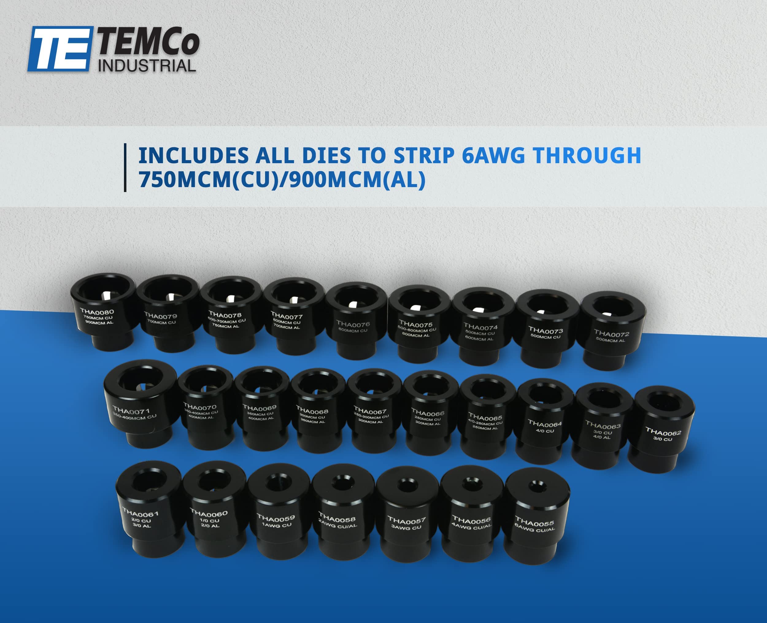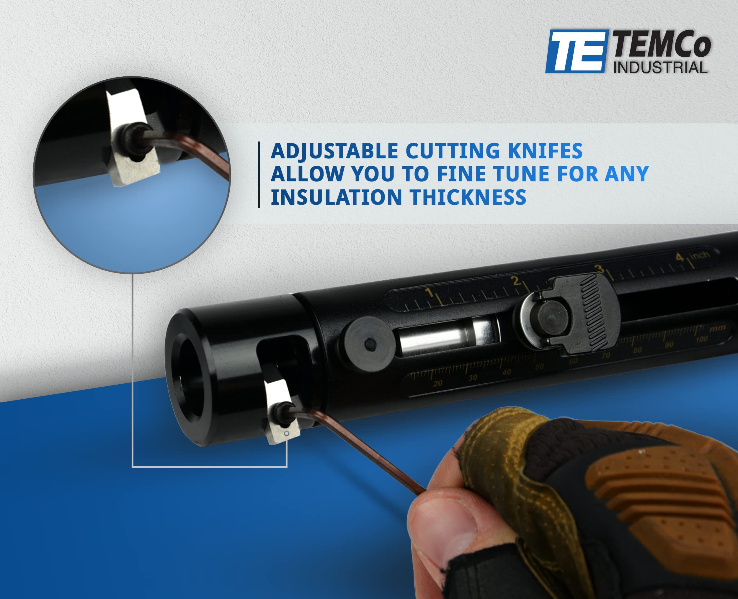 Cable Stripper will strip THHN / XHHW cable from 6 gauge to 750 MCM with varying insulation thickness.