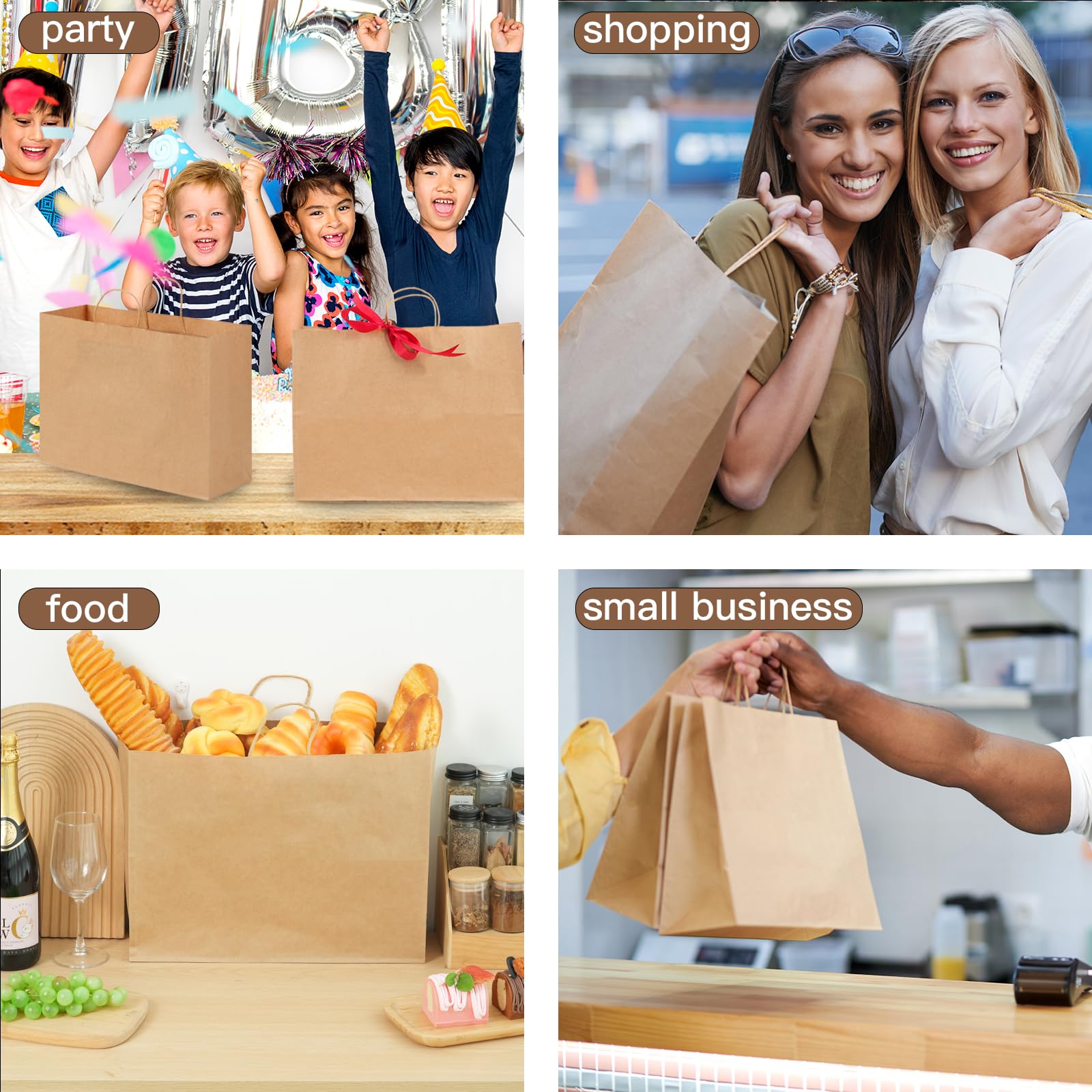 Multi-purpose: These kraft paper bags are suitable as gift bags, custom bags, party bags, shopping bags, wedding or party favor bags