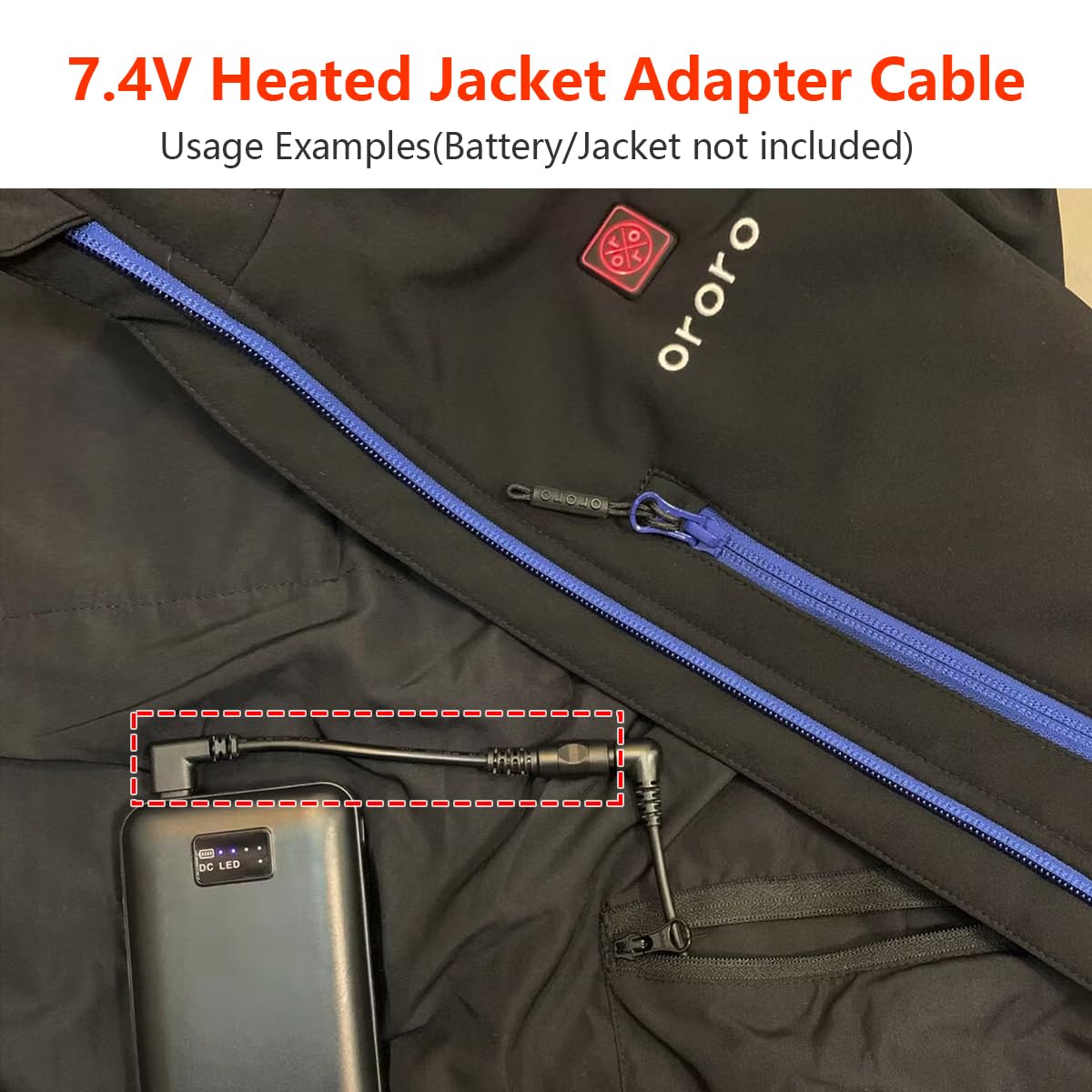 Heated Jacket Battery Charger Adapter Cable work for ORORO Heated Jacket. This Cable DC connector size is 4.0mm. If your jacket connector size is 3.5mm, 3.8mm or 5.5mm, it cannot plug into your heated jacket connector with this cable. Please attention this before purchase!