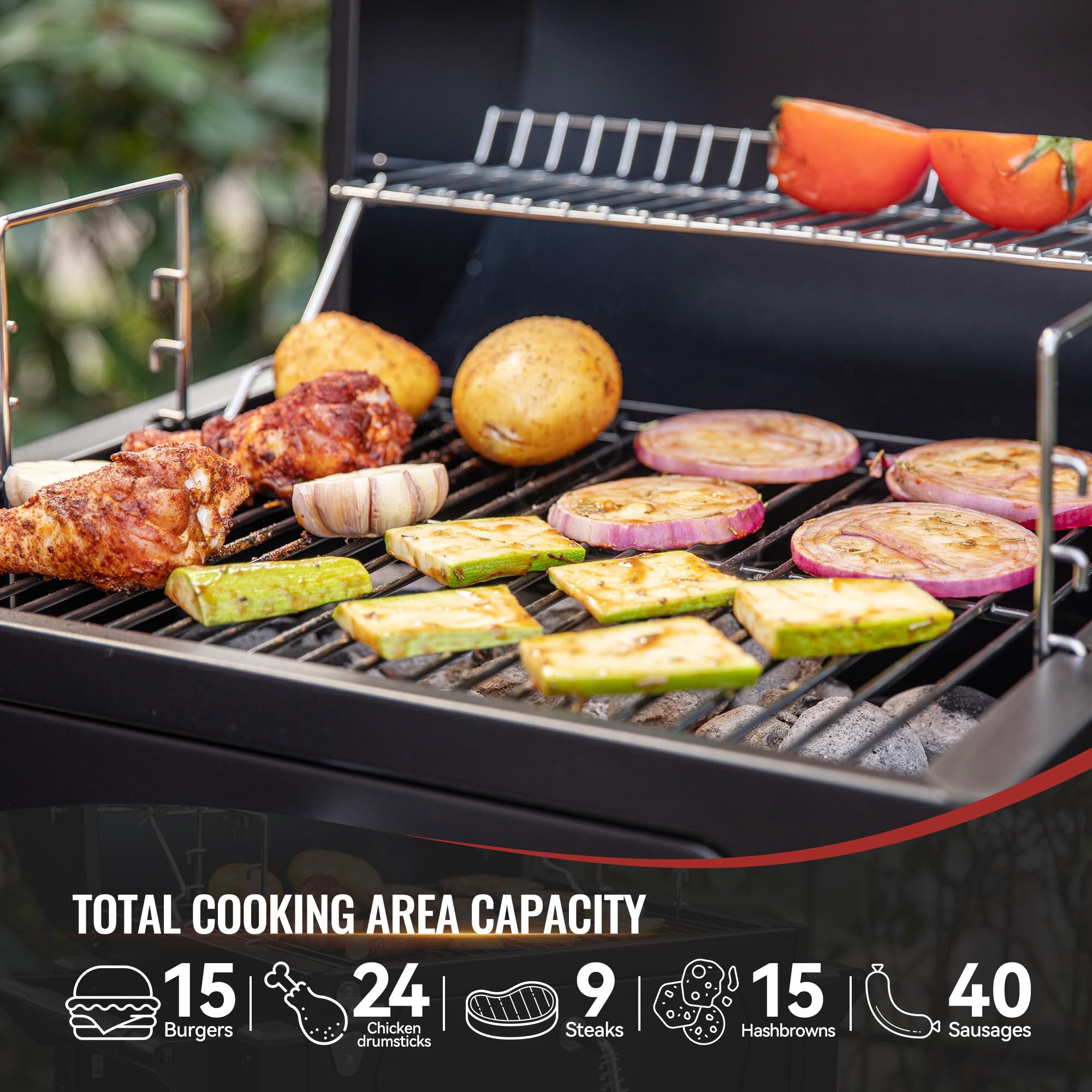 Temperature Control: Customize your preferred cooking temperature by adjusting the 3-level adjustable fire grates and two air dampers easily