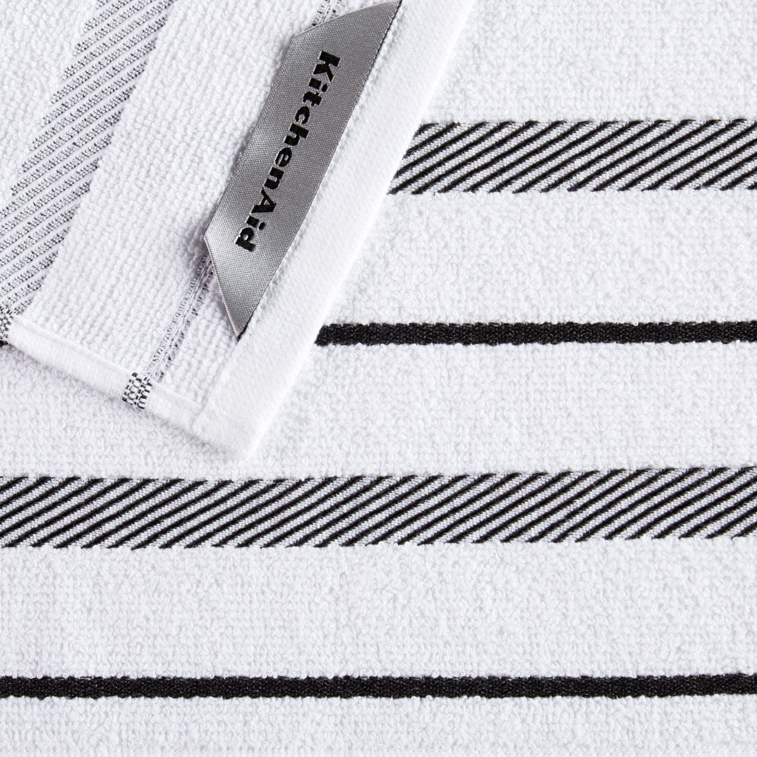 Get your kitchen chores done in classic style with the KitchenAid Albany Stripe dish cloth 8 Piece Set. The set includes four solid black dish cloths and four black and white striped cloths that measure 12 inches wide by 12 inches long. The solid dish cloth is made with highly absorbent cotton and works well for wiping splatters and spills, cleaning countertops, and drying dishes since it is non-abrasive and safe for use on most kitchen surfaces. The striped dish cloth is made with a cotton-polyester blend for durability and versatility use while tidying up. These soft dish cloths are perfect for everyday use including daily household chores. Perfect for drying and cleaning glassware, cookware, flatware and more. New dish cloth makes the perfect gift for a housewarming or hostess gift. Easy clean machine washable. Made in India.