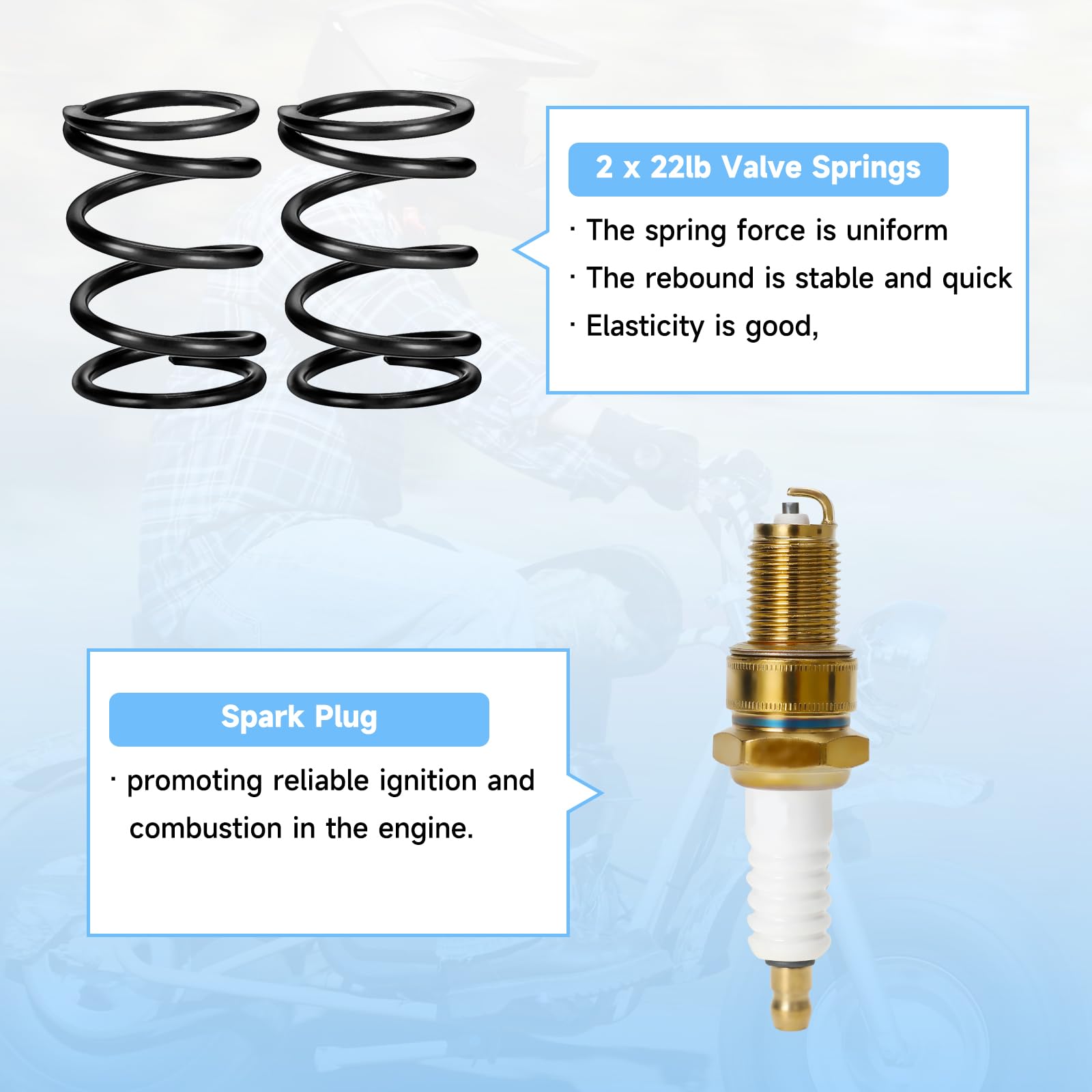 Necessary Power Horse Part: We offer two 22lb valve springs, which fits for Predator 196cc 212cc 224cc engine. Made of high qulity metal. The spring force is uniform, the rebound is stable, the elasticity is good, It will allow you to turn more RPM without any sort of valve breakdown or excessive wear. Regularly open and close the intake and exhaust valves to allow fresh combustible mixture to enter the cylinder in time and exhaust gases to be discharged from the cylinder in time, which increases more power horse. The extra spark plug solve the ignition issue