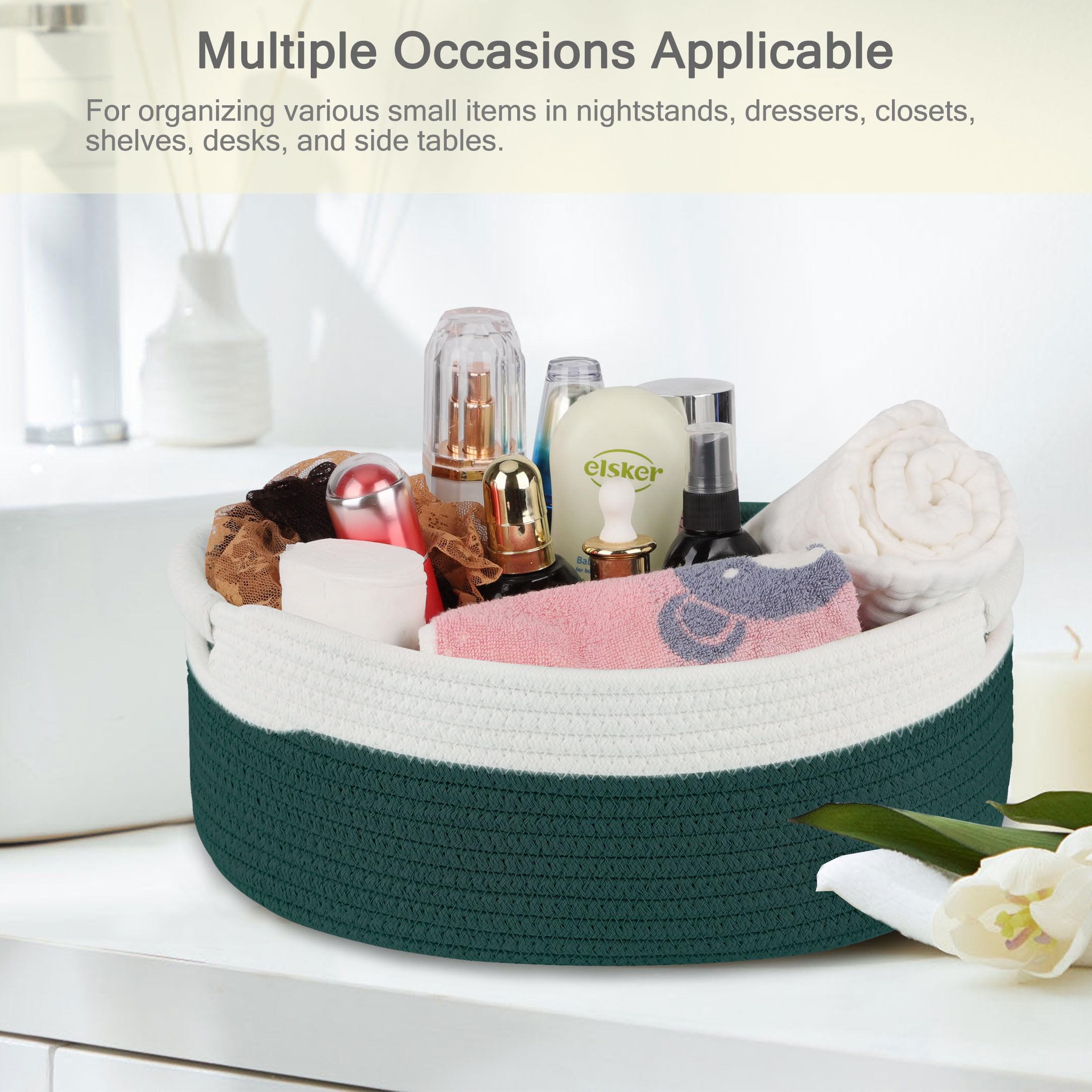 【Multiple Occasions Applicable】This woven storage basket is suitable for many indoor occasions. Suitable for organizing a variety of small items in bedside tables, dressers, closets, nurseries, bathrooms, dens, bedrooms and living rooms. After use, our rope woven basket will keep your room clean and tidy.