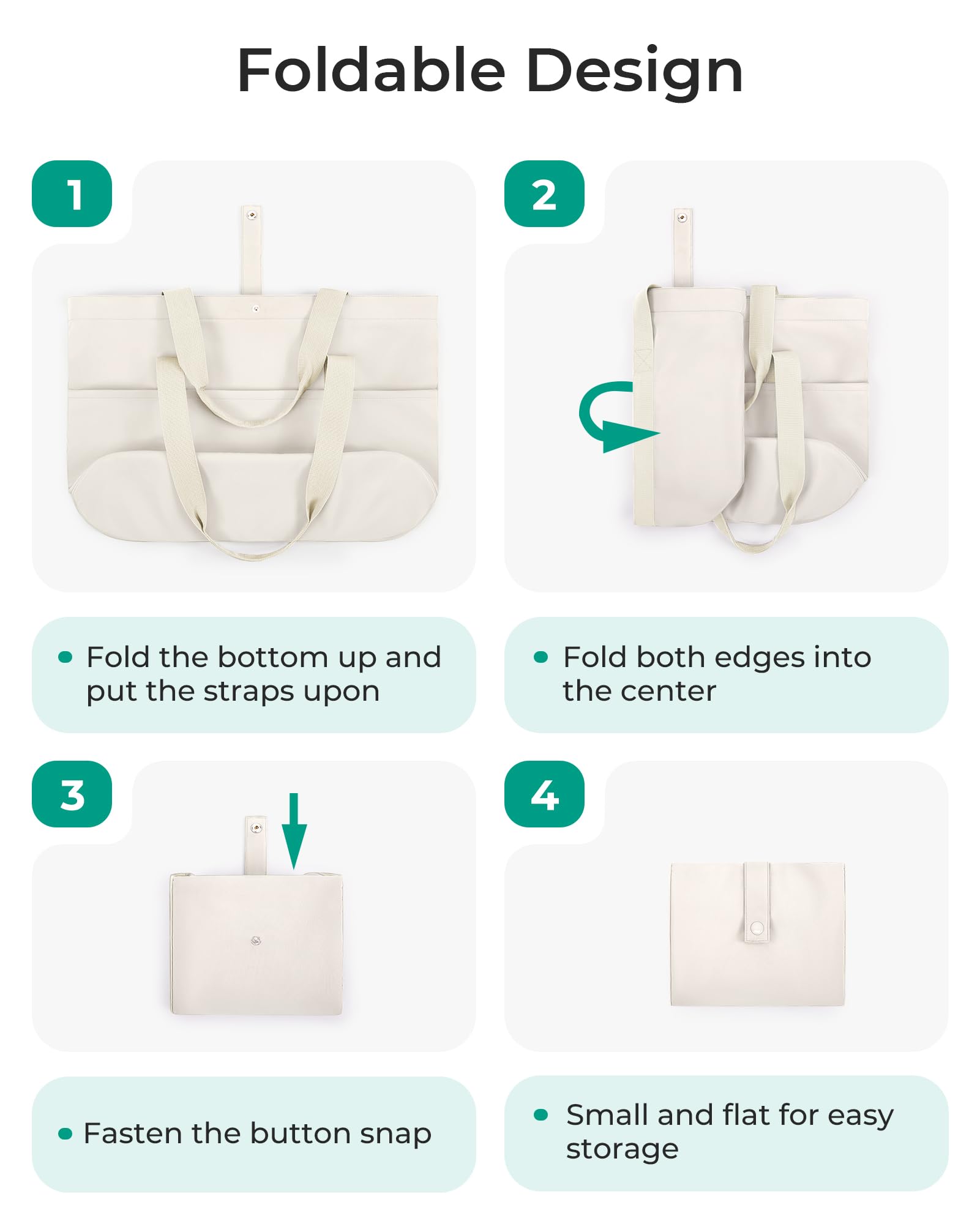 Large Size and Foldable-Unfolded: 16.5''L x 6''Wx 14''H, Folded: 7.9'' x 7''; This large tote bag has a huge capacity and can hold A4 books and 15.6-inch laptops. The travel tote bag can be folded into a small pouch, easy to put into your backpack, travel bag, duffle bag or suitcase, save your space.
