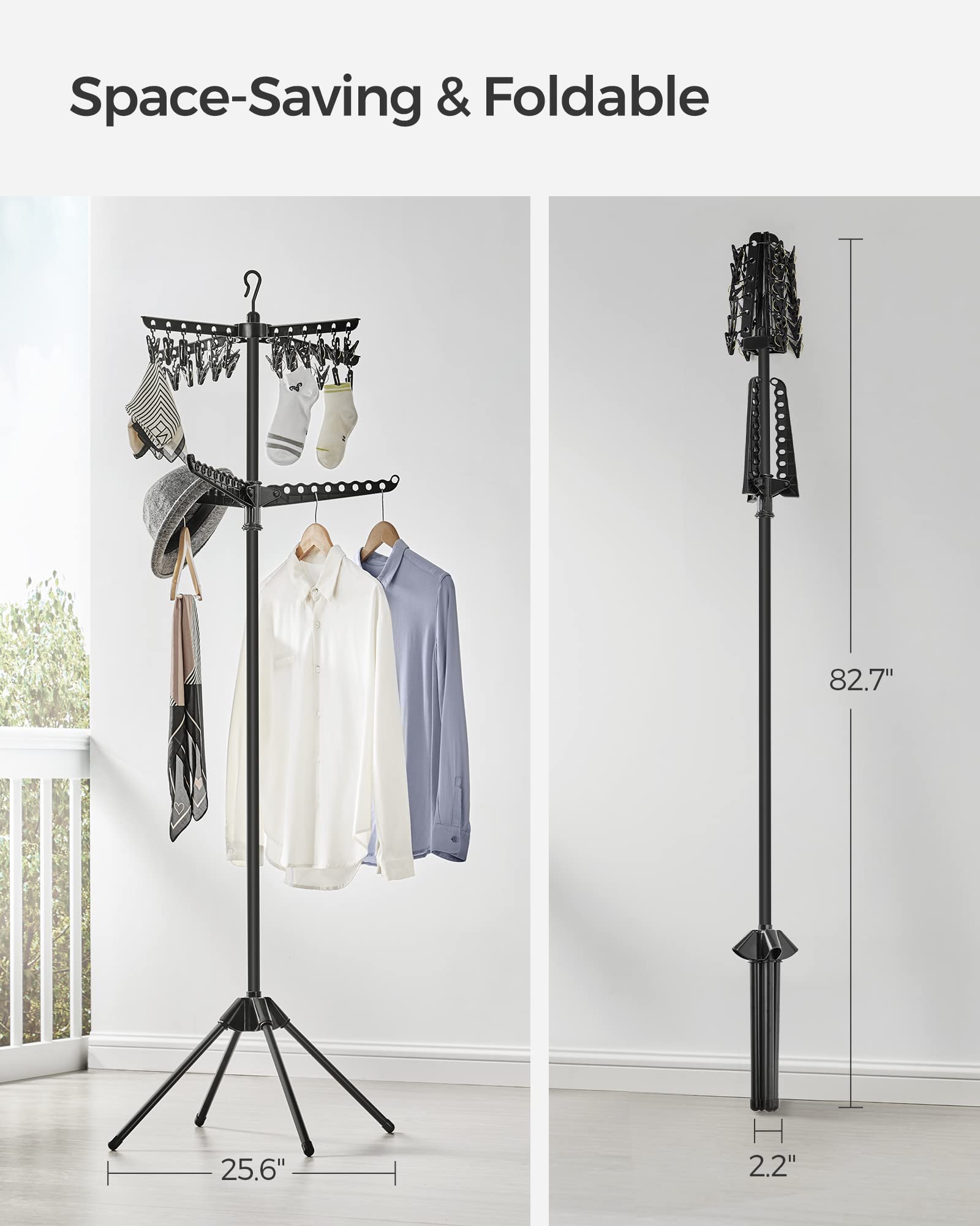 [Foldable & Space-Saving] Standing at 25.6"D x 25.6"W x 72"H during use, this clothes drying rack takes up little space, perfect for small spaces. Fold the arms and legs into a small size of 2.2"D x 2.2"W x 82.7"H, it will stay out of the way after use