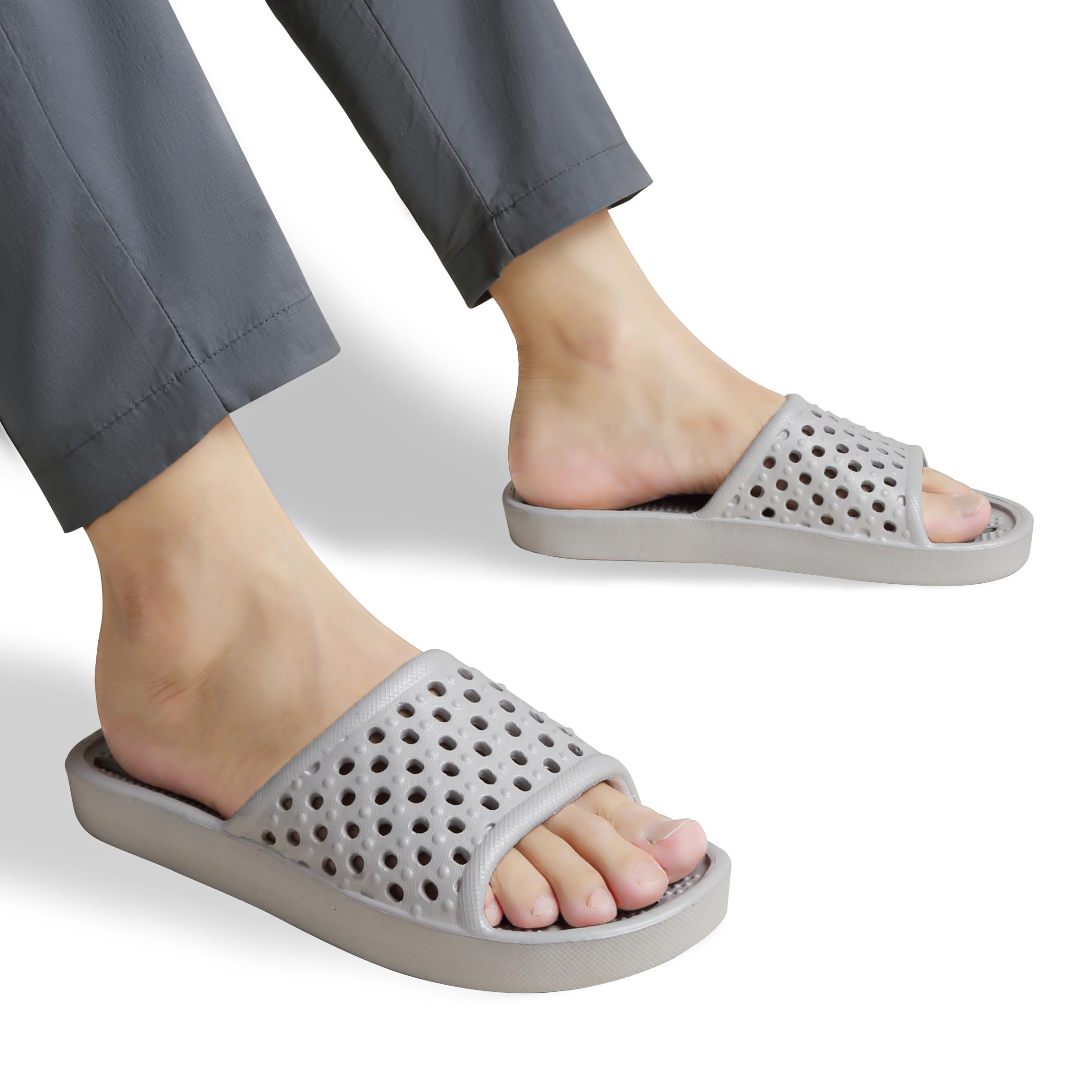 NON-SLIP ✔️ High-quality non-slip material and sole lines increase the malleability of the shoes and increase the friction between the shoes and the ground. Tiny particles on the slipper upper, Can increase the friction between the feet and the shoes. While massage the soles of the feet.
