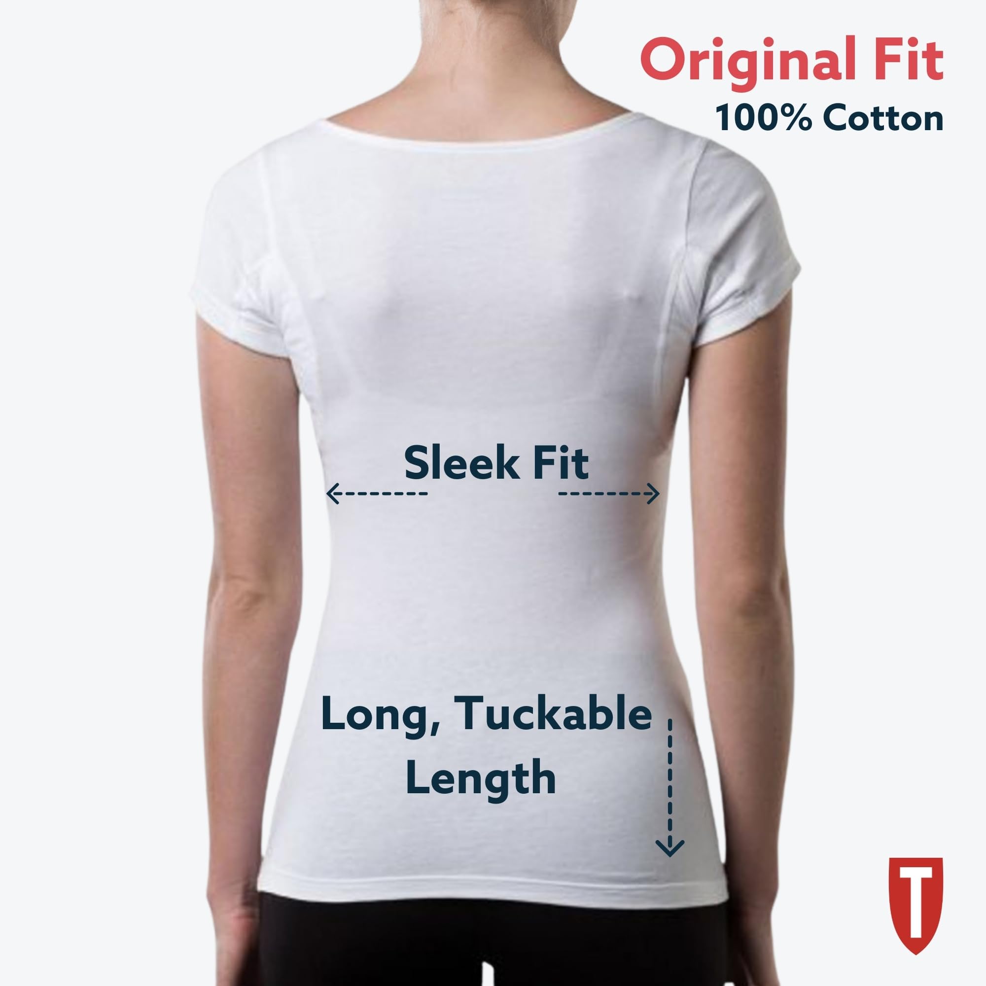 Versatile Sweat & Odor Defense T-Shirt: Our stylish women's scoop neck undershirt complements any outfit while discreetly keeping sweat and body odor at bay, giving you the confidence to wear any shirt without fear of sweat marks; These original fit undershirts are made from 100% premium combed cotton (Heather Grey 90/10 cotton/poly) exclusive of the underarm pads inner layer and feature a tagless, lay-flat collar for a seamless fit