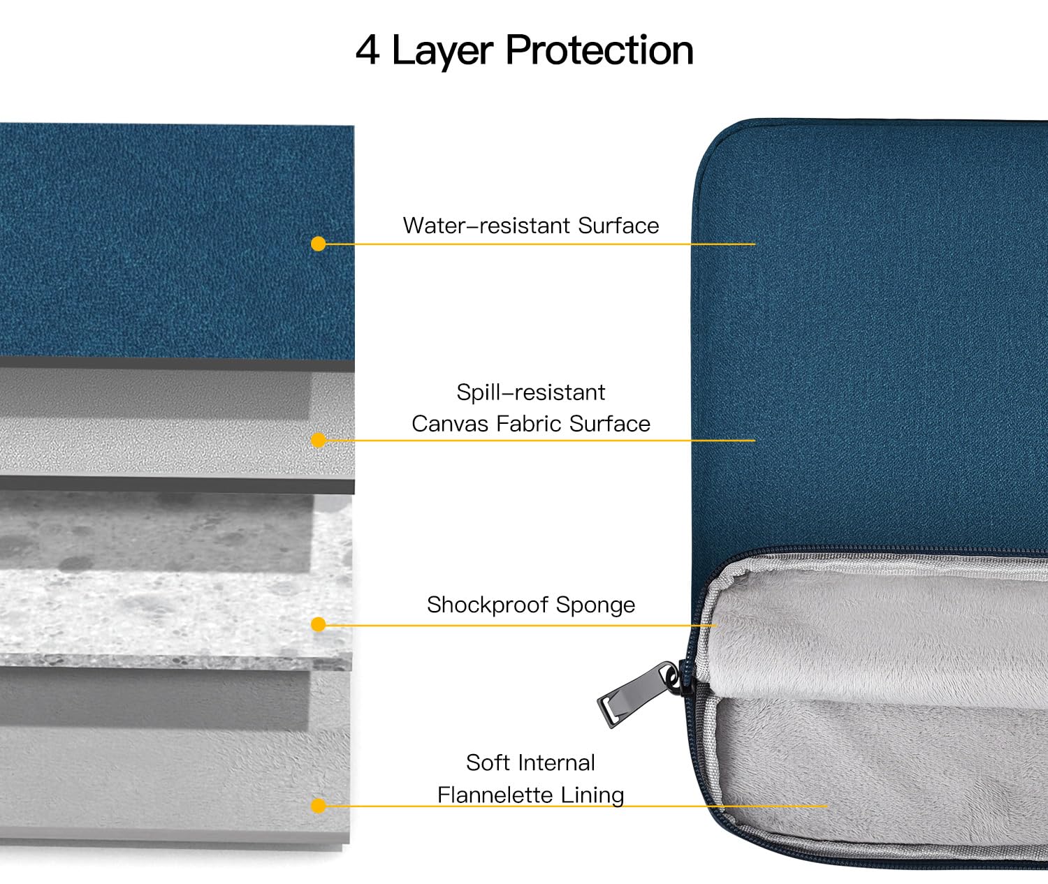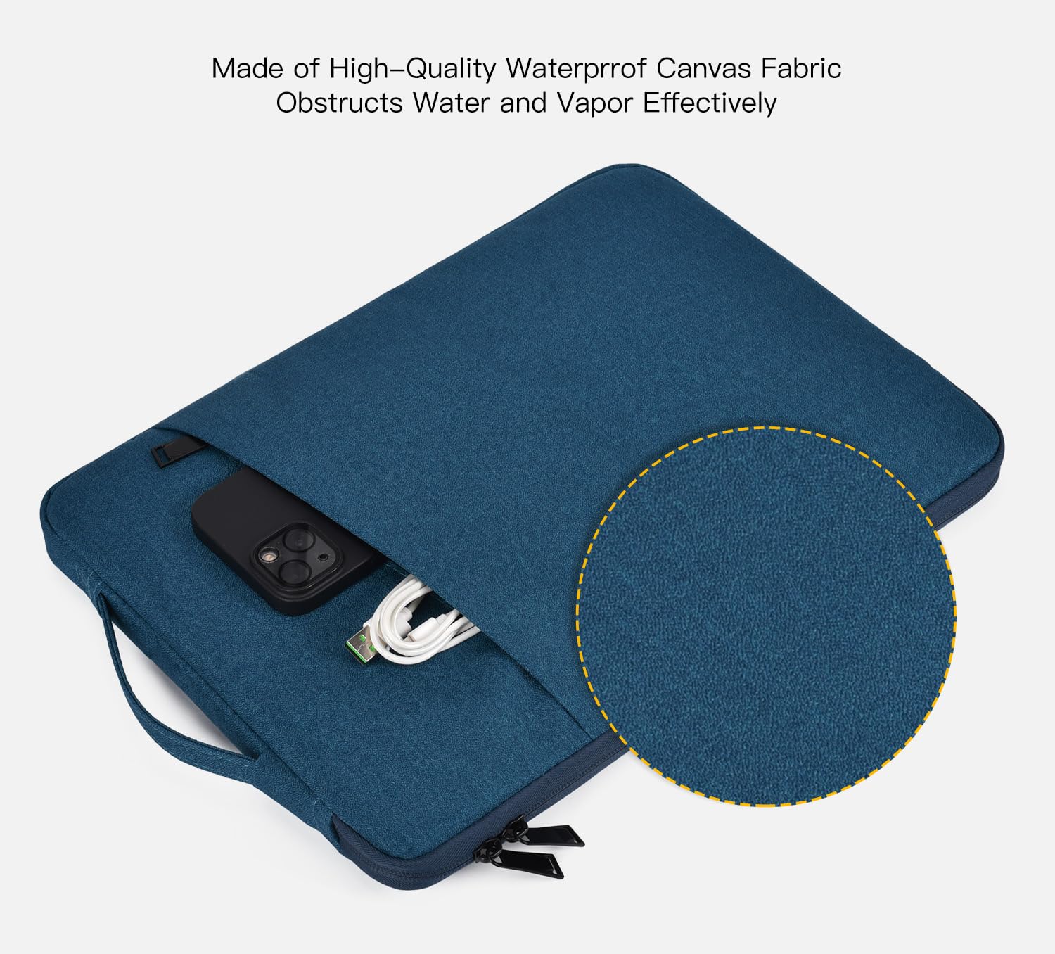 【Water Resistant &Slim Lightweight】The 14 inch laptop case made of high-quality waterproof Canvas fabric, which obstructs water and vapor effectively. Don't worry about your laptop and accessories splashing water or rain. Super slim and lightweight, it can easily be transported inside another bag, backpack or briefcase.