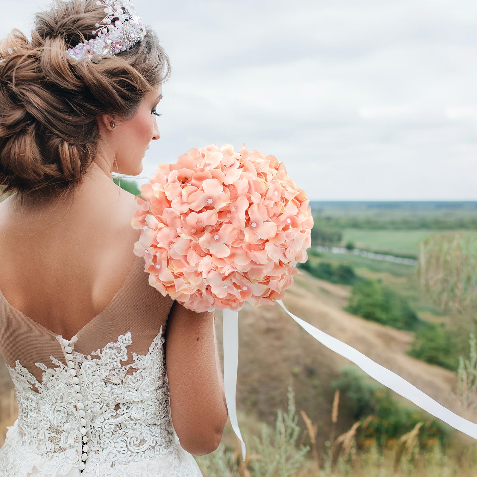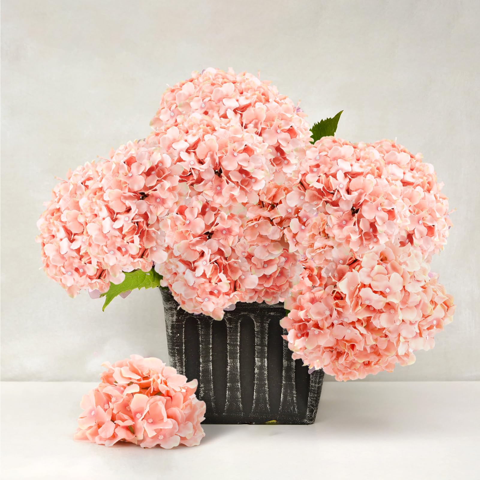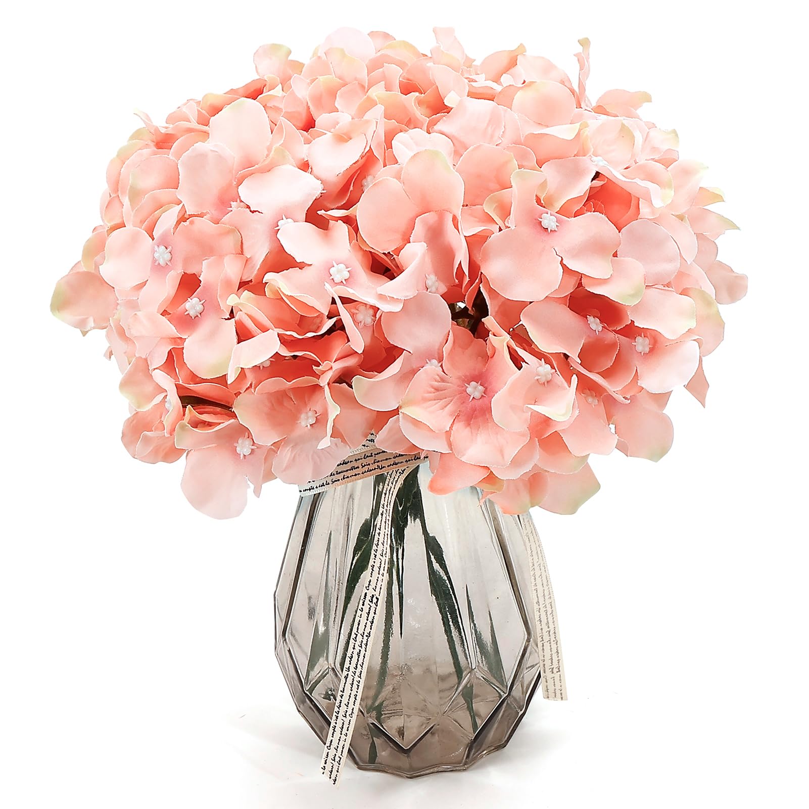 64PCS Light Peach Hydrangea Flowers: You will get 64pcs rubber pink artificial flower heads and 64 pcs stems, enough quantity to meet your needs in daily life or on important occasions. Note: Flowers and stems are separate and need to be installed yourselves