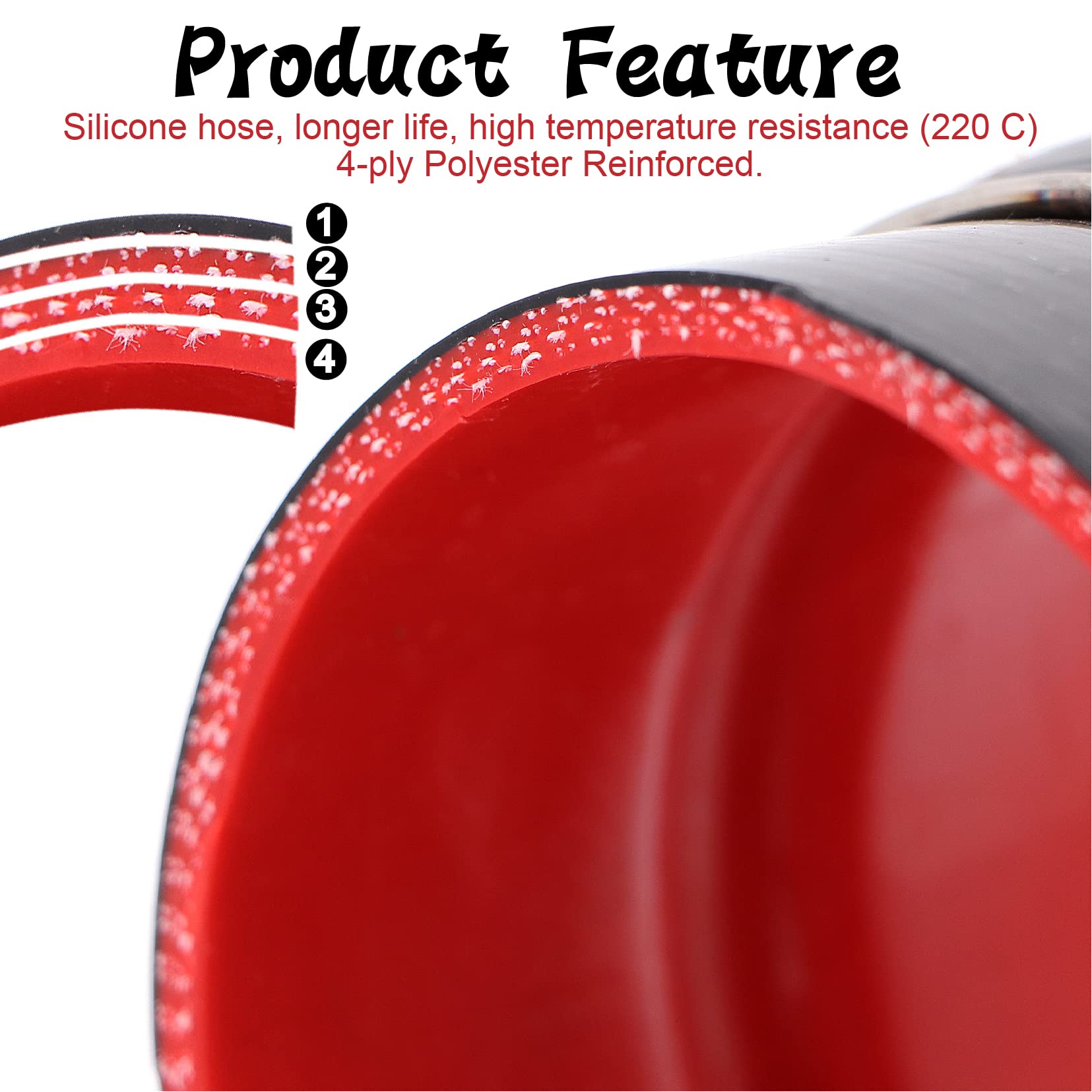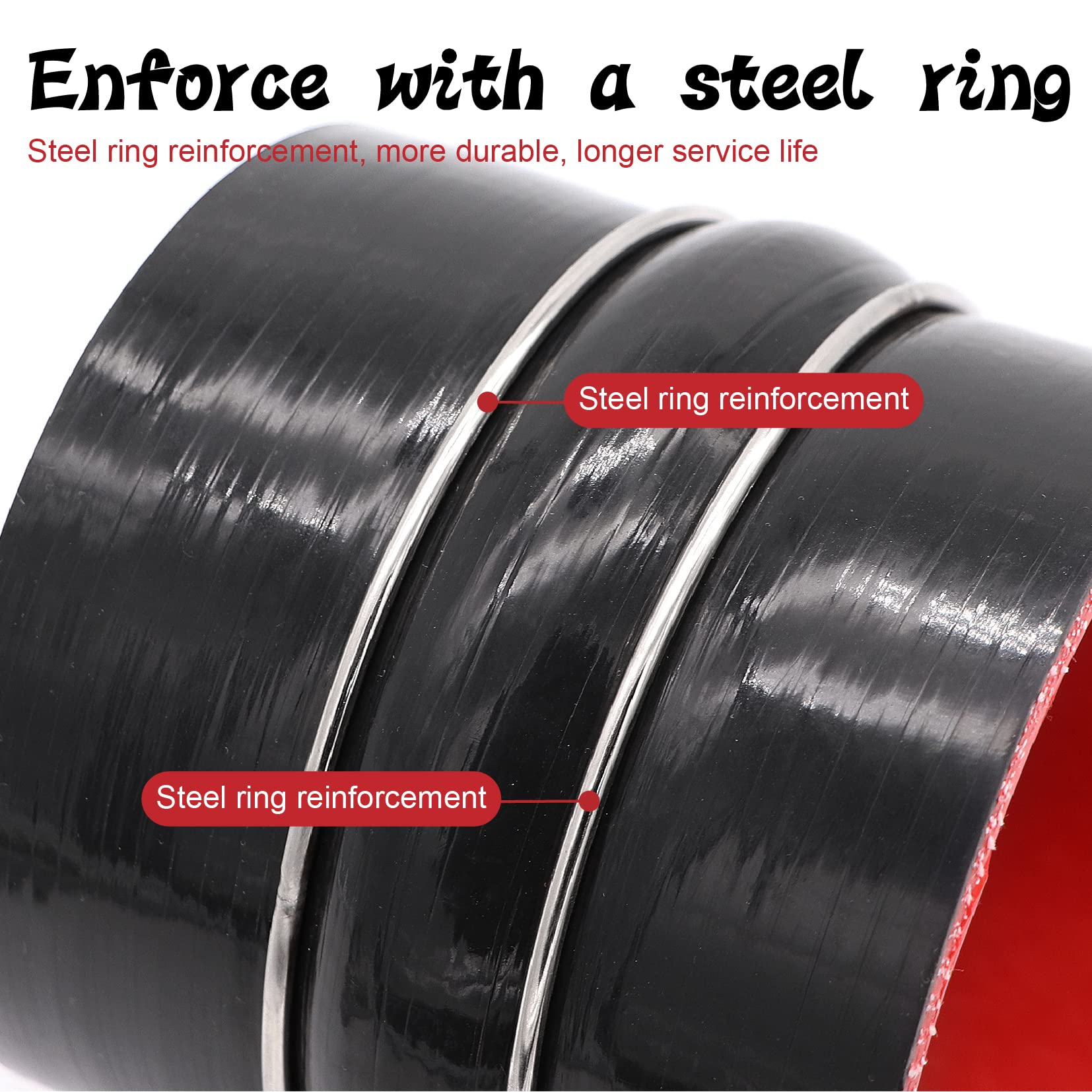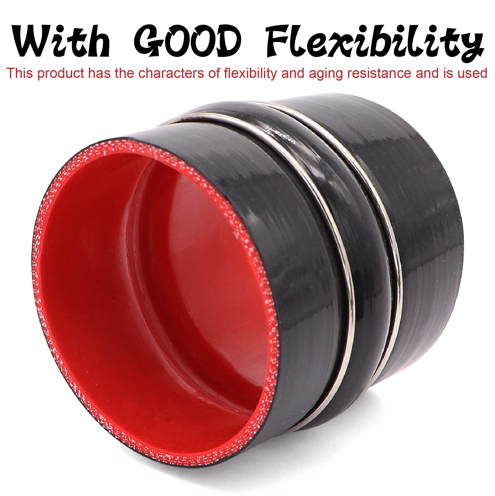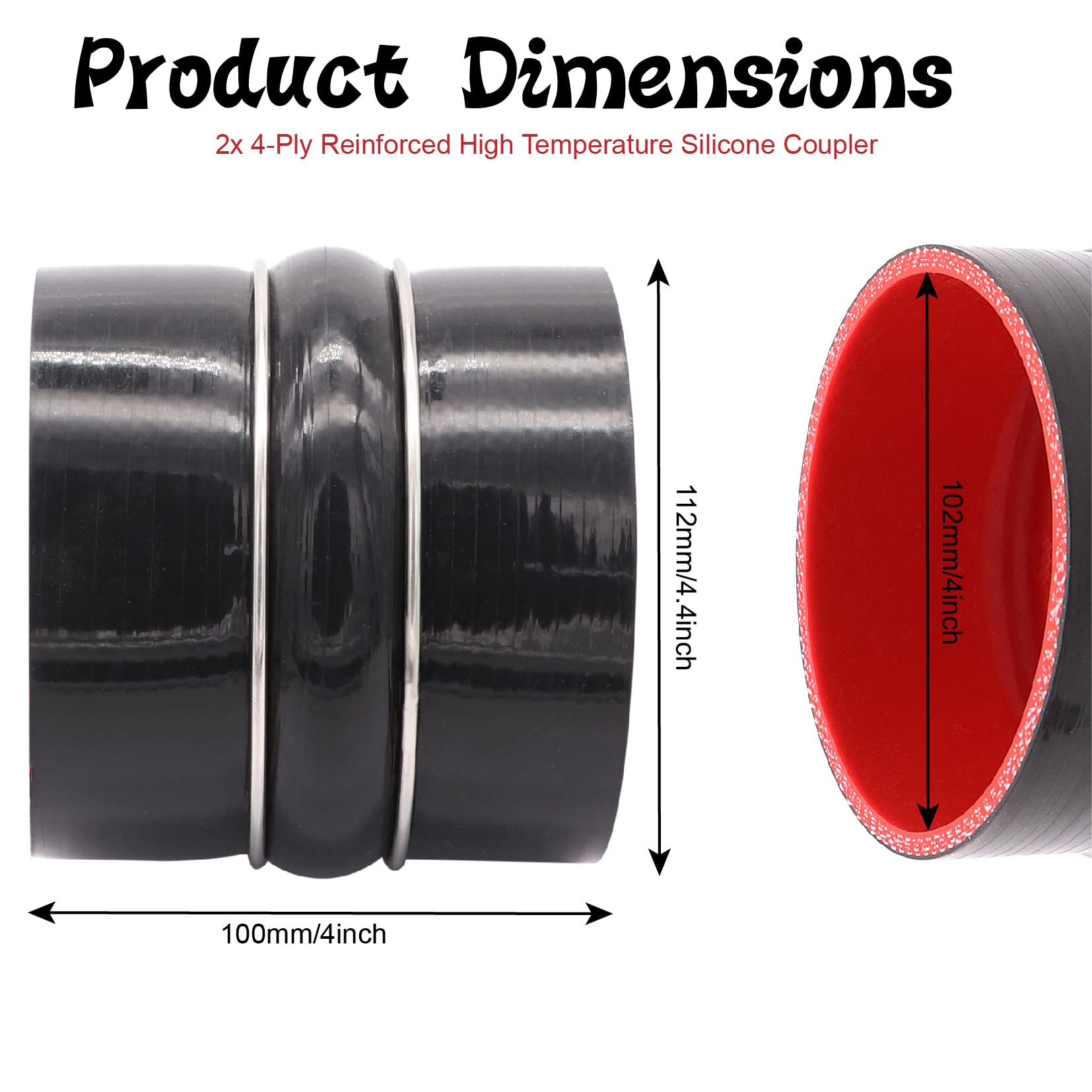 Package includes:2pcs 4inch Straight Hump Black Silicone Coupler Hose,4pcs stainless steel hose Clamps.