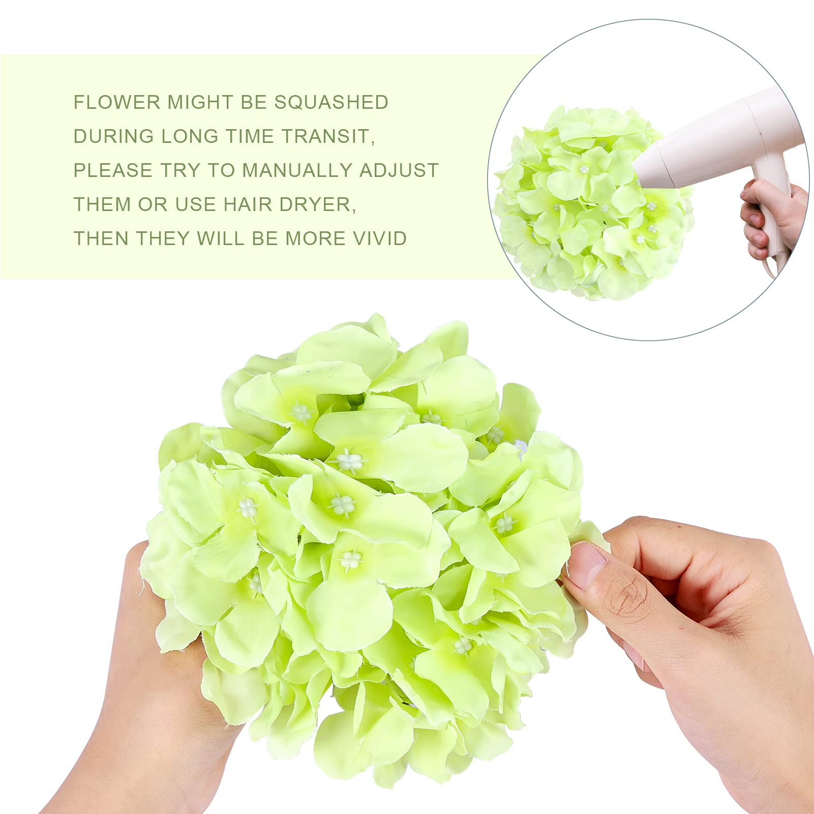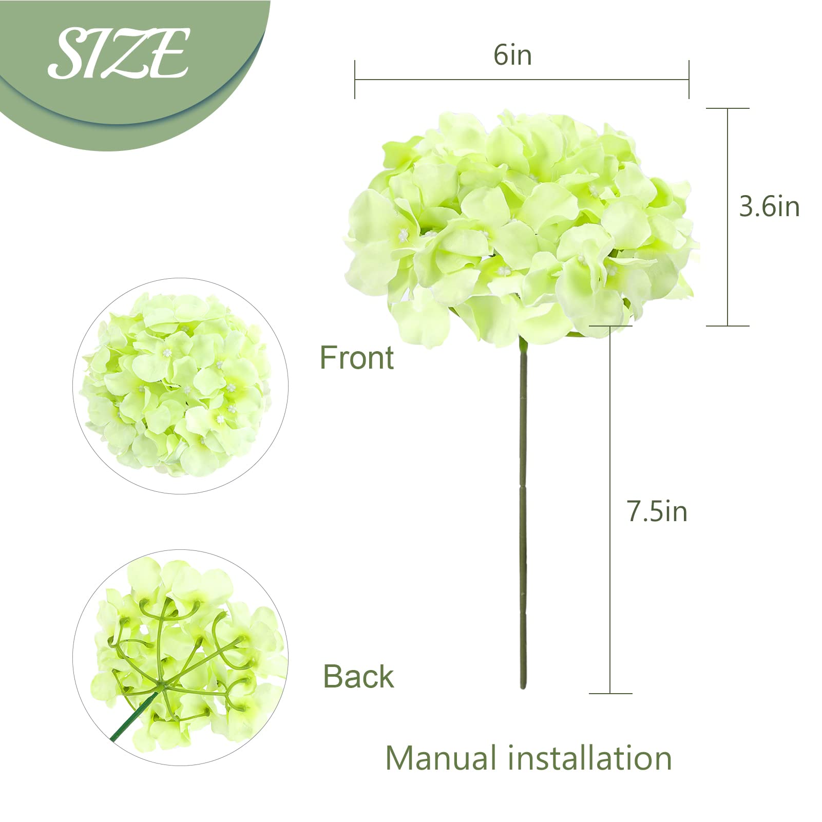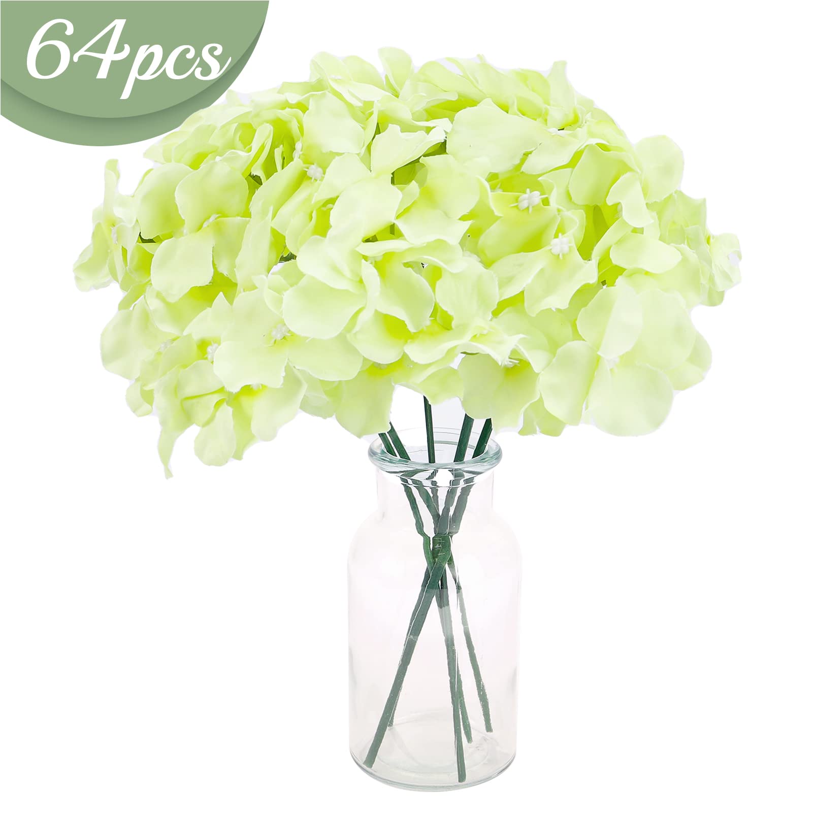 64 PCS Green Hydrangea Flowers: Come with 64 pcs light green hydrangea flower heads and 64 pcs stems, a sufficient quantity to meet your needs in daily life or on important occasions. Note: Flowers and stems are separate, need to be installed yourselves