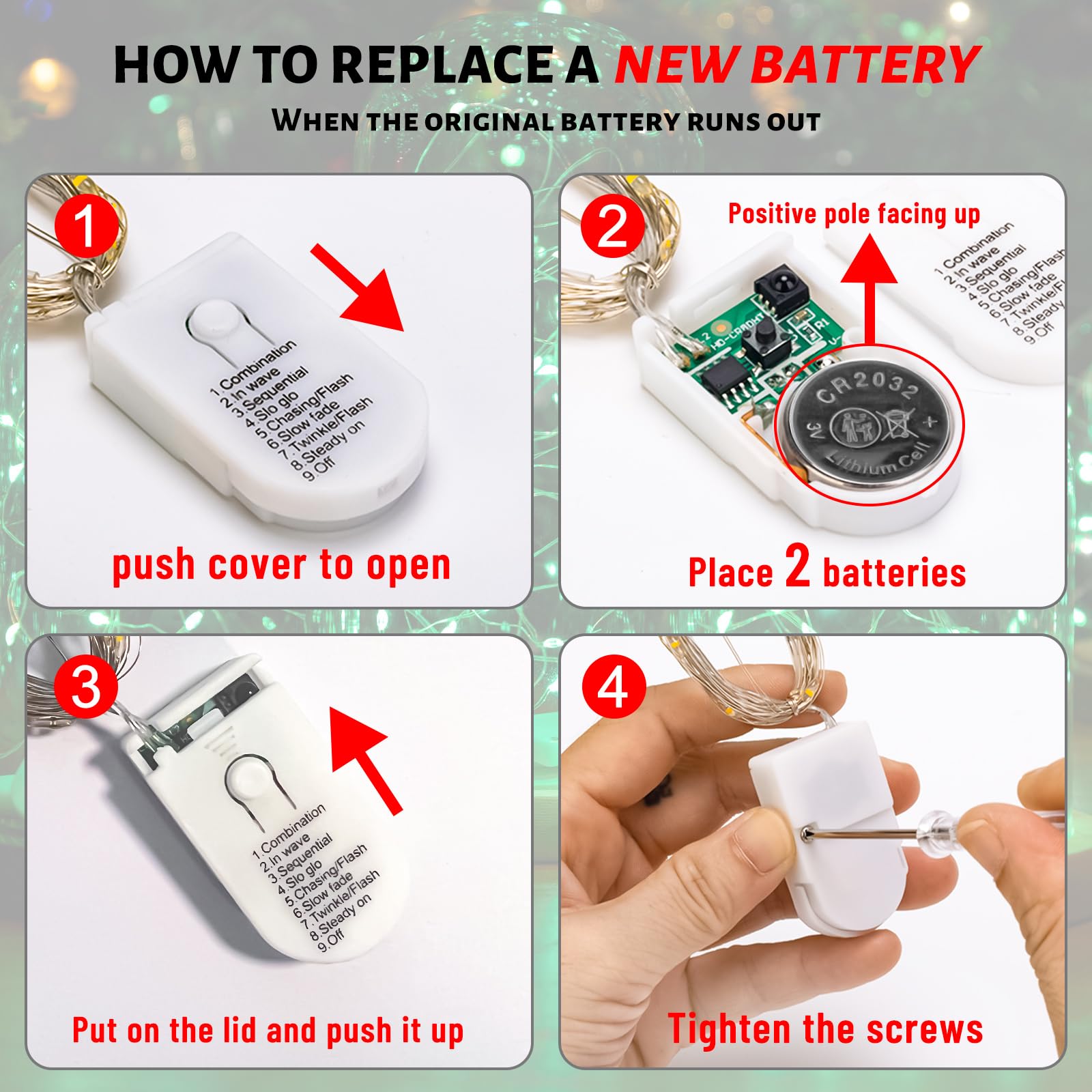 Light Up Longer and Energy-Saving: Powered by 2 CR2032 batteries(included) and also come with the extra 6pcs batteries for replacement; The batteries need to be replaced when the lights get dim. Low voltage, won't overheat even with a long time of use. And the installation is also very simple and only takes a few seconds