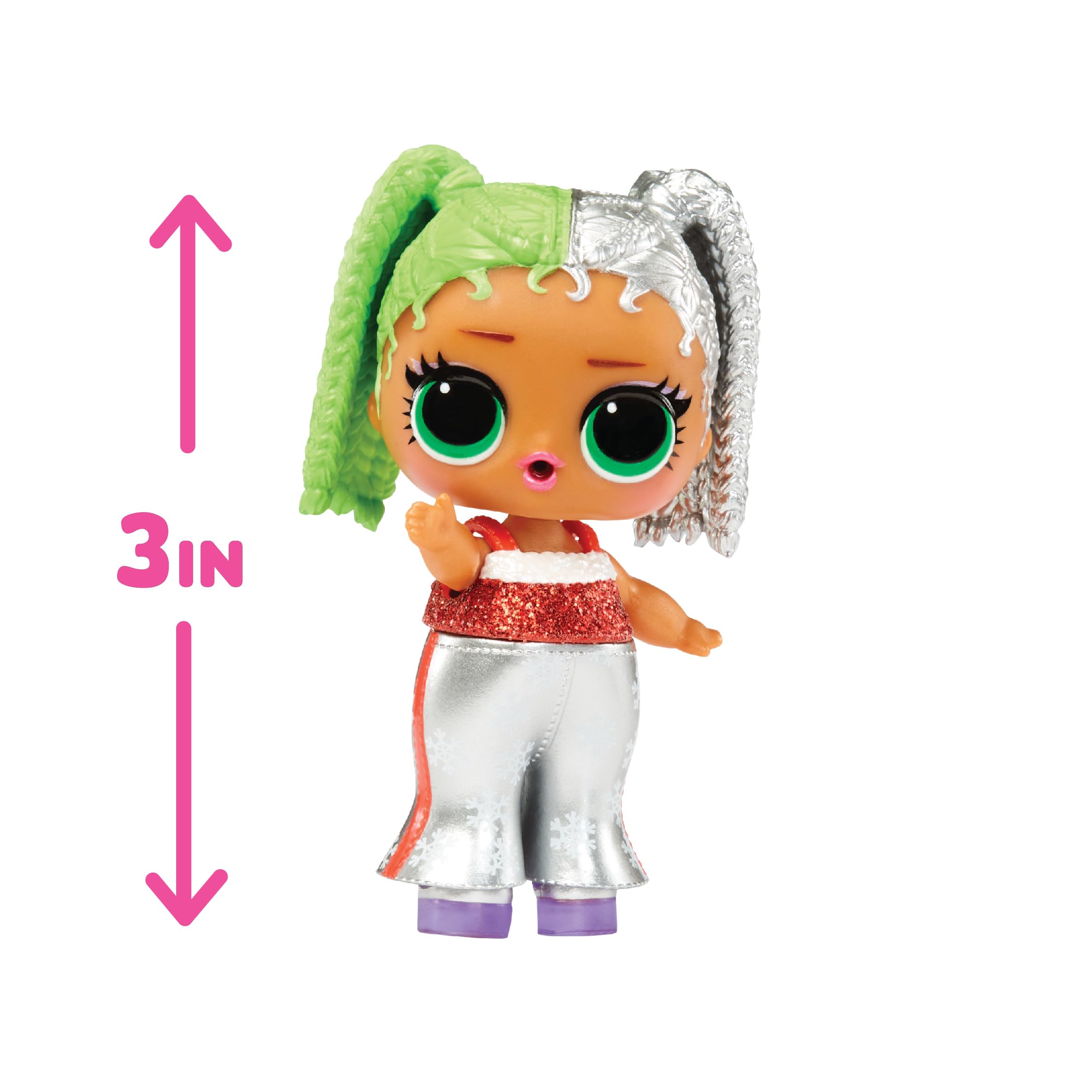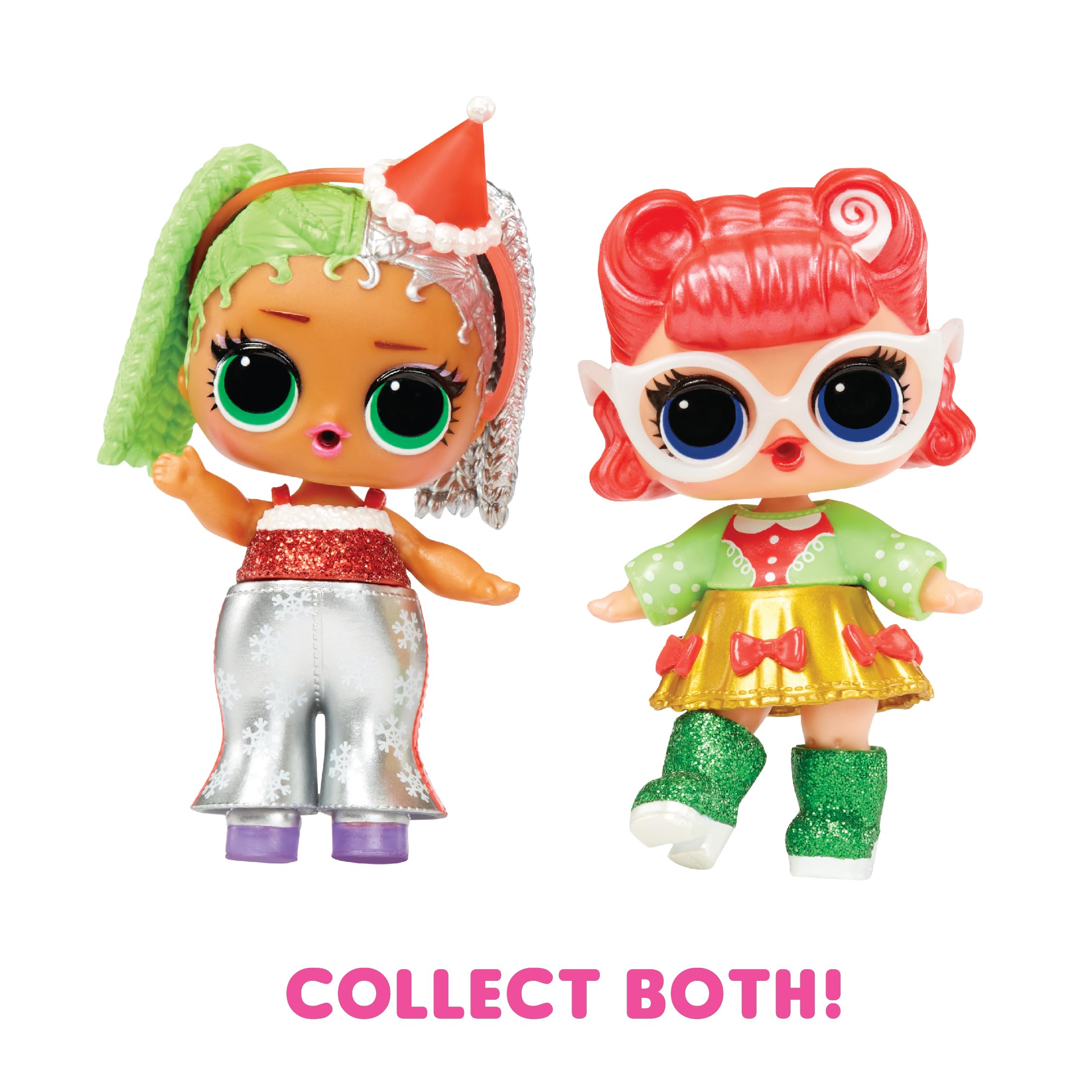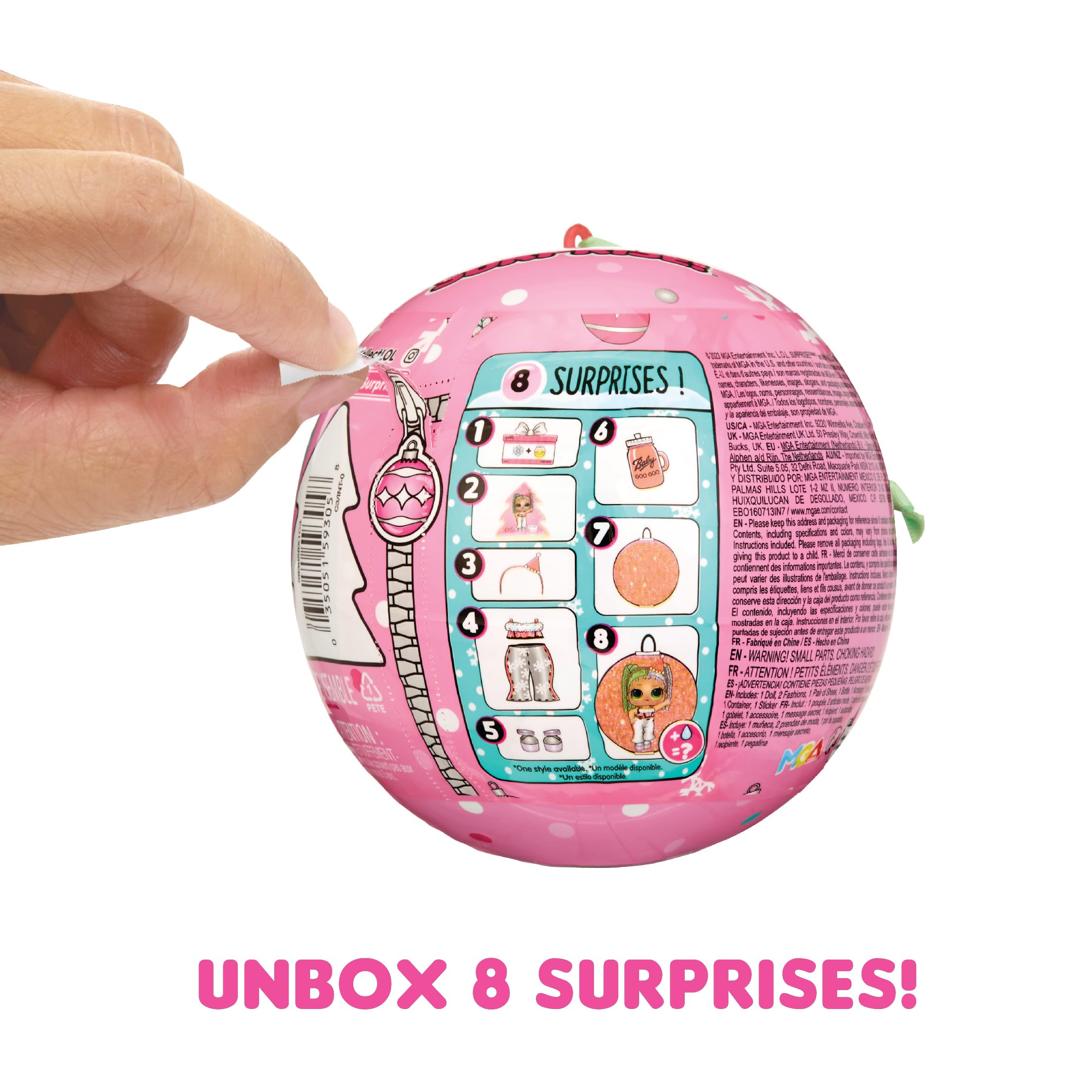 8 SURPRISES: Includes: (1) 1 Limited edition L.O.L. Surprise! Holiday Present Surprise doll; (2) Outfit; (3) Shoes; (4) Bottle; (5) Accessory; (6) Sticker; (7) Secret Message; (8) Ornament Ball