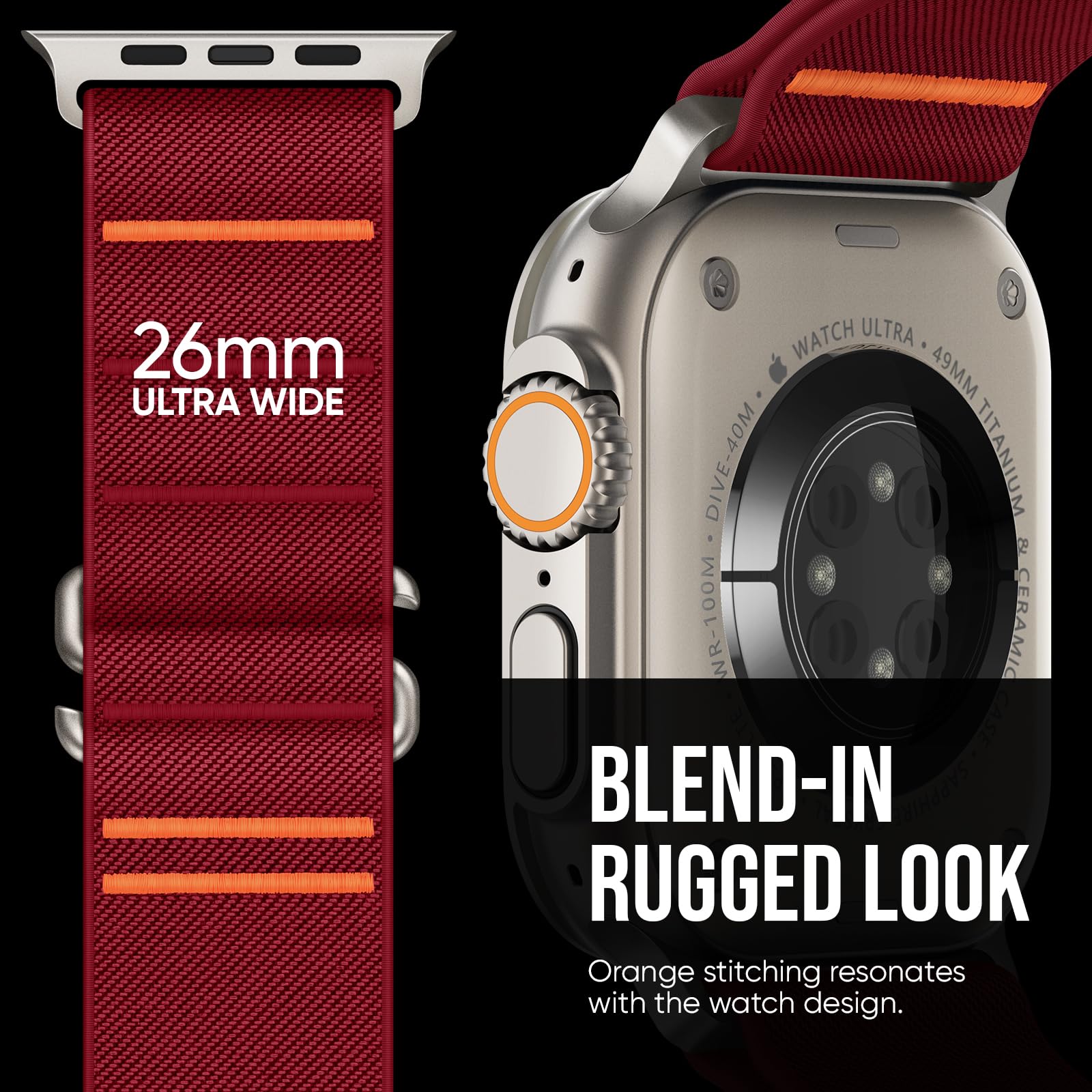 Handcrafted. Every Stitch Matters: Our commitment to superb craftsmanship lies in every single stitch. Hand-stitched by skilled craftsmen to imbue an expression that’s totally exclusive to you, the 26MM wide iwatch bands are a tailored match for Ultra and any bold soul.