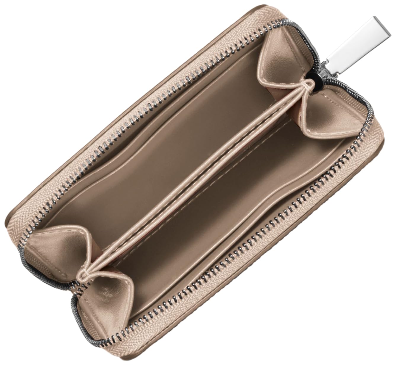 Description Designed in a compact zip-around silhouette, this pebbled leather wallet opens to reveal multiple card slots and space for your cash. We love how an exterior slip pocket offers quick access to your ID. Slip it into the coordinating tote bag, or a clutch come evening.
