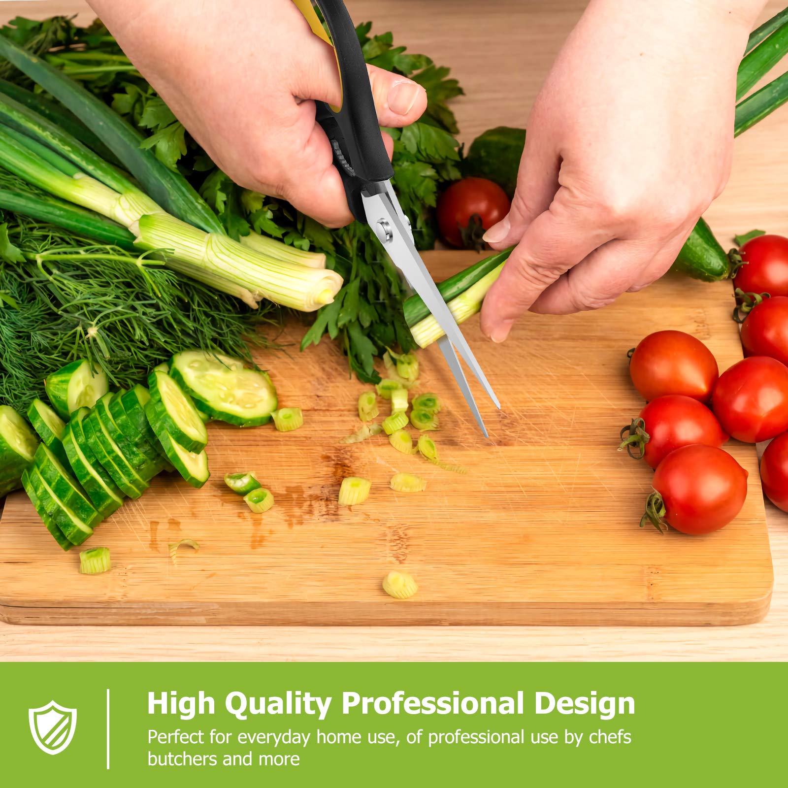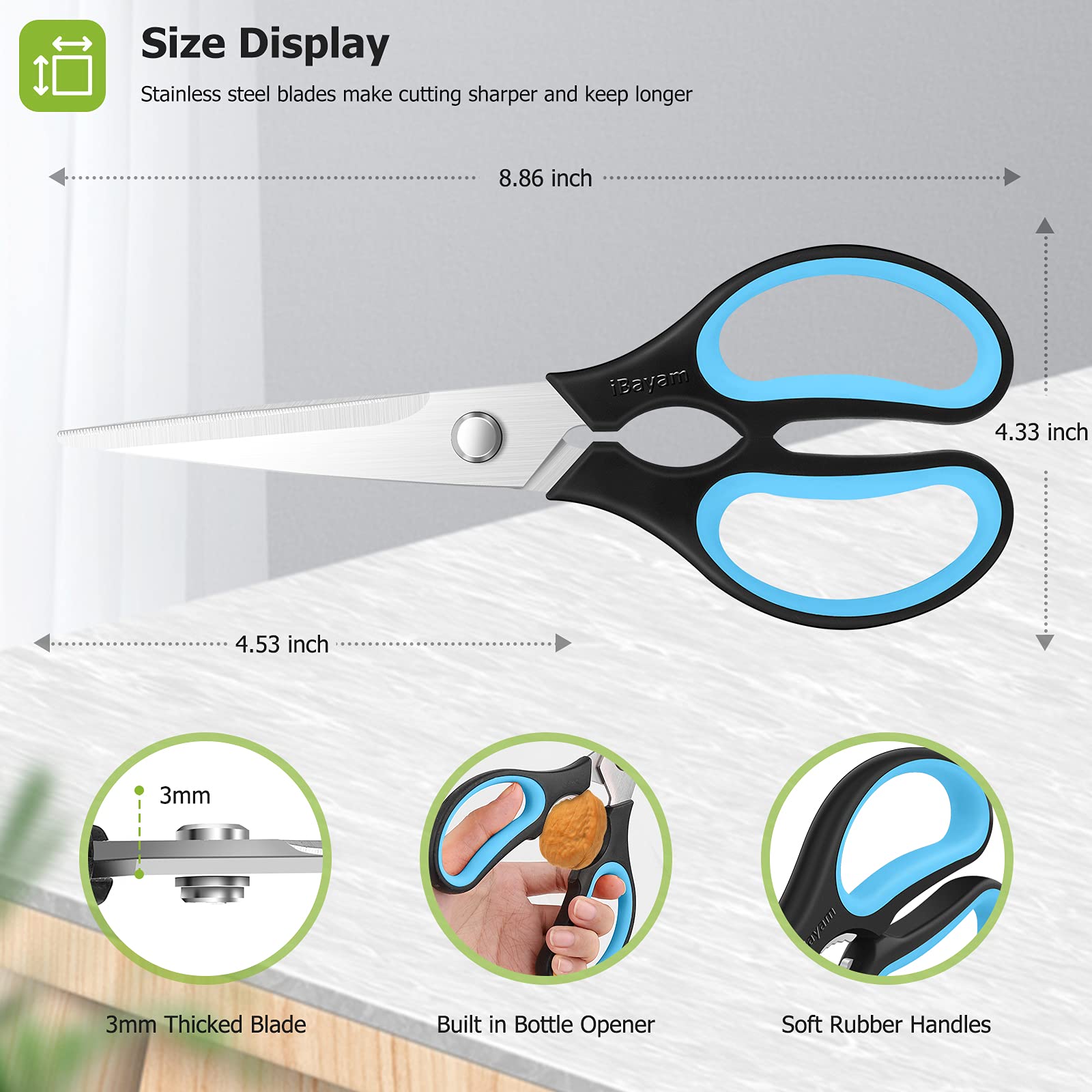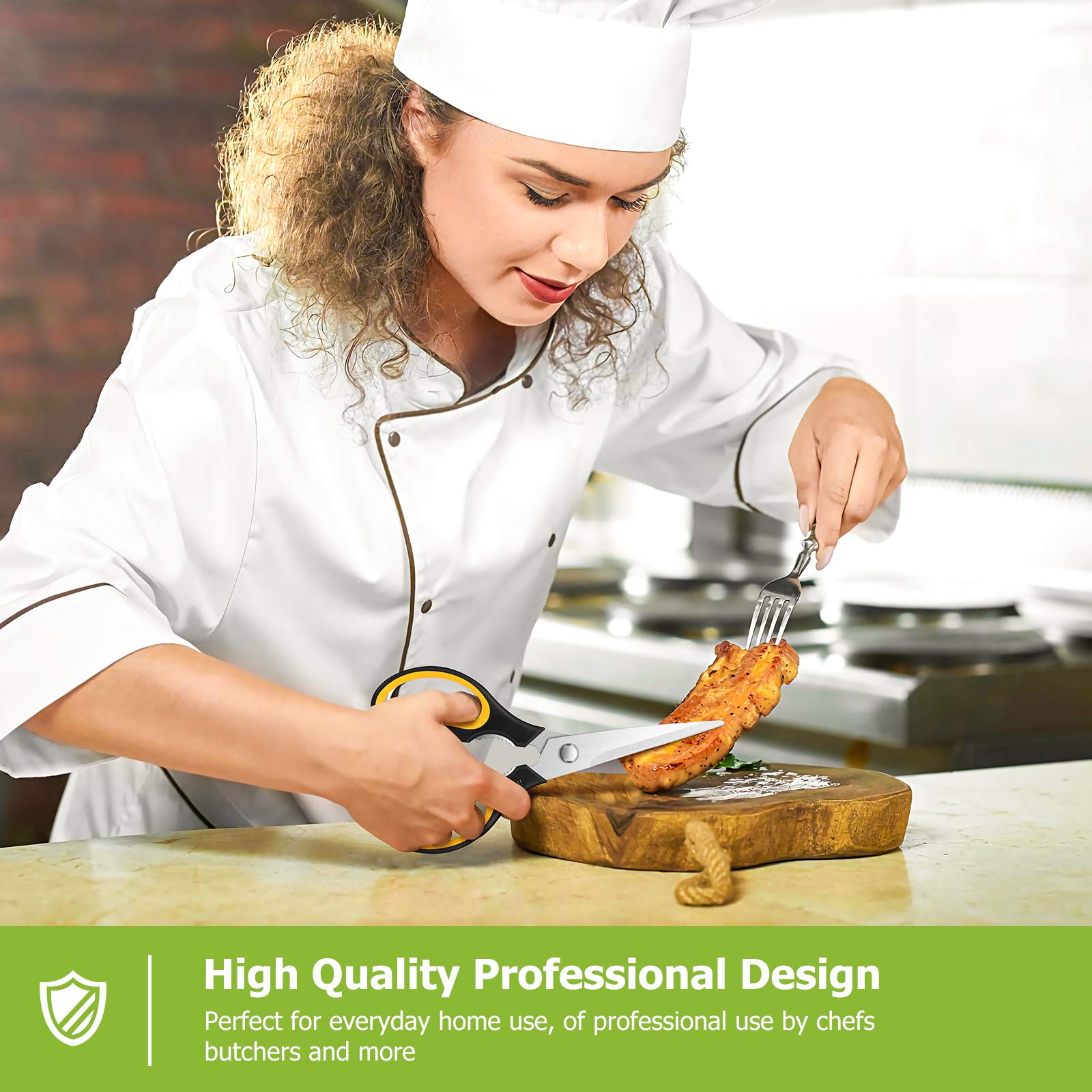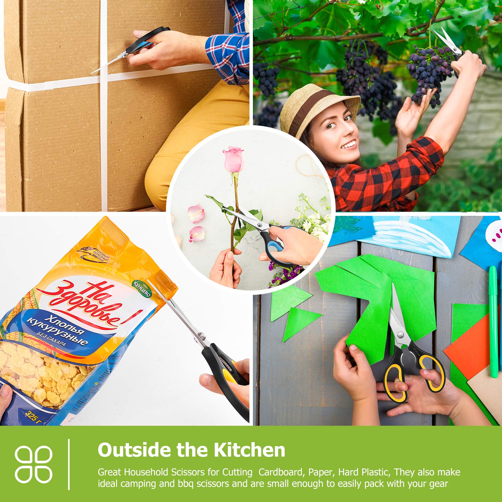 VERSATILE KITCHEN SCISSORS: Heavy duty 8.5" super sharp kitchen shears, Valued 2-Pack in one set, soft comfort-Grip handles. Great as Food Scissors, Meat Scissors, Cooking Scissors, Scissors Kitchen, Cooking Shears, Poultry Scissors, Utility Scissors, Meat Cutting Scissors.