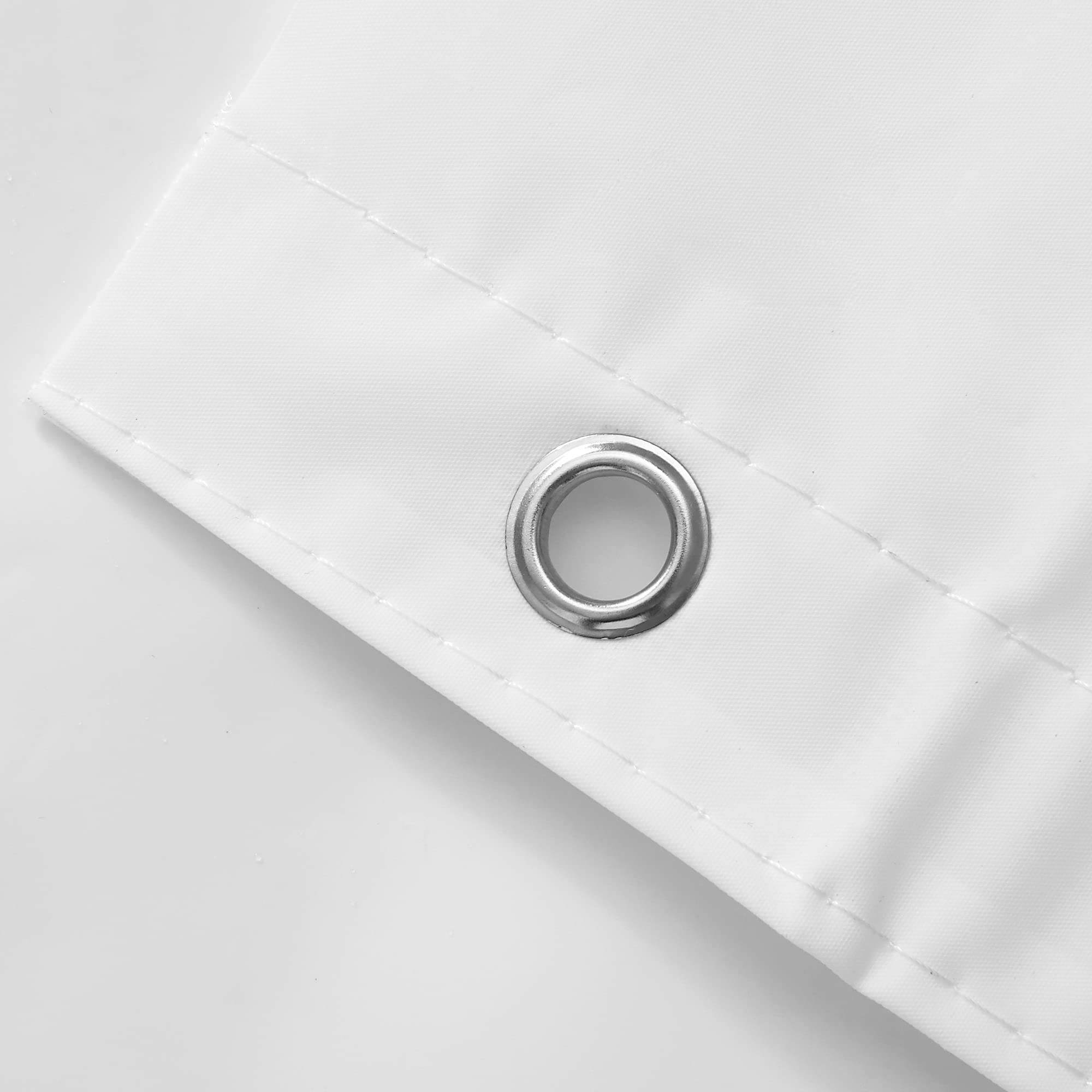 Lasting Durability: This light-weight white shower curtain liner with rustproof metal grommets and reinforced header prevents top holes from tearing
