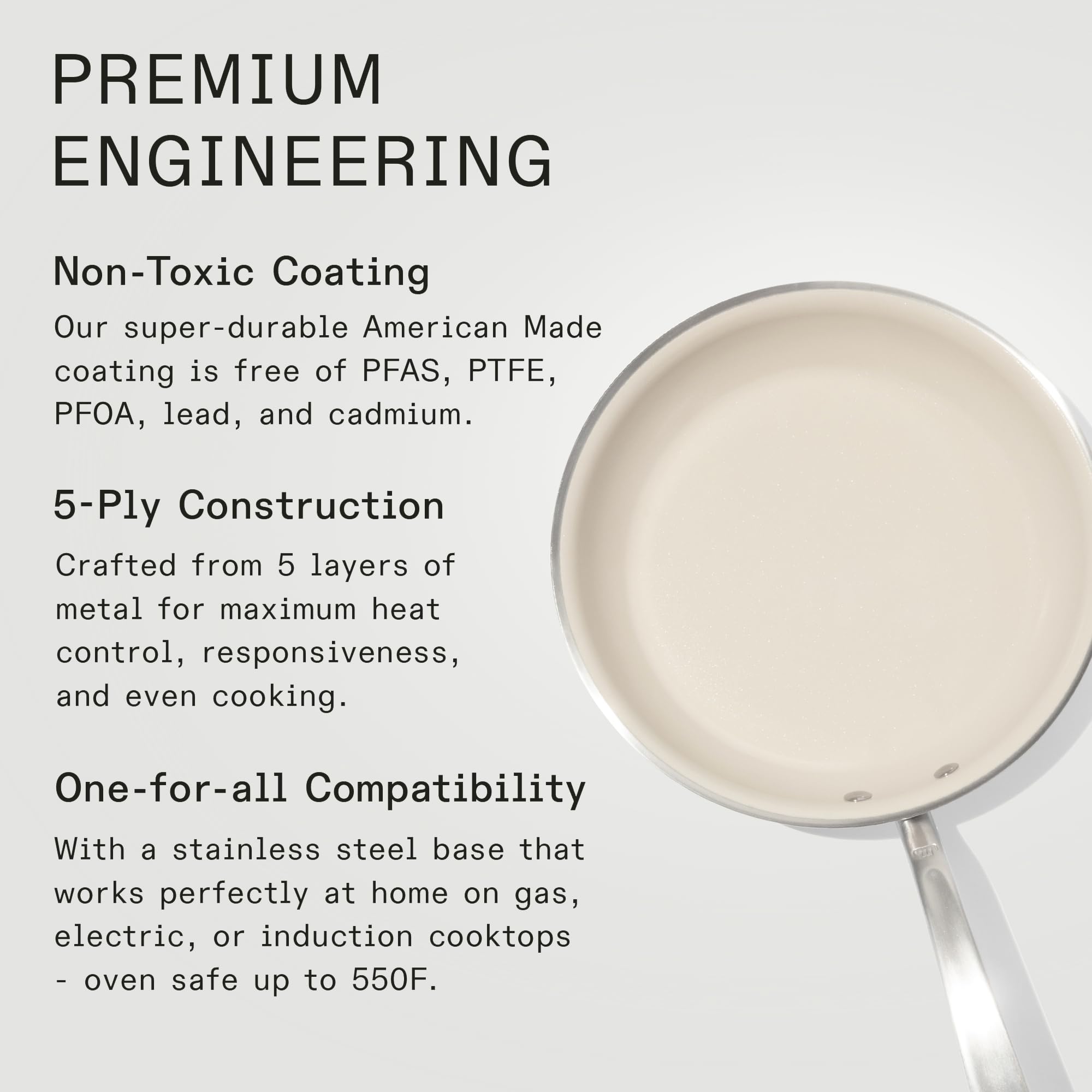 Premium 5-Ply, Cladded Construction - Each pan is crafted from 5 layers of metal, giving you maximum heat control, responsiveness, and even cooking capabilities