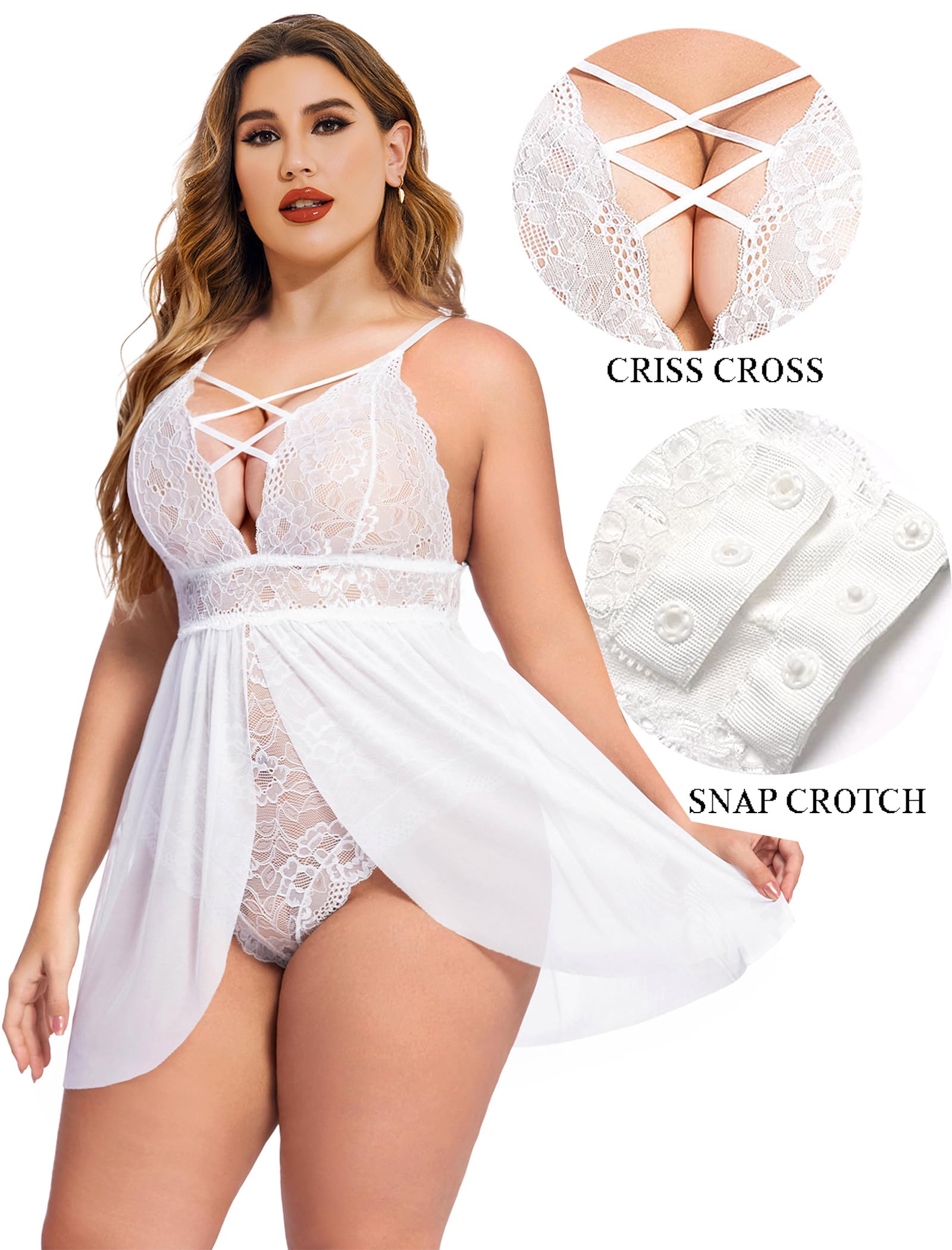 Details: Sexy babydoll lingerie with full lace cups and criss-cross detailing, adjustable spaghetti straps, lace underbust band, and mesh skirt with vented front, all this features allows this chemise easy to fit and comfortable to wear