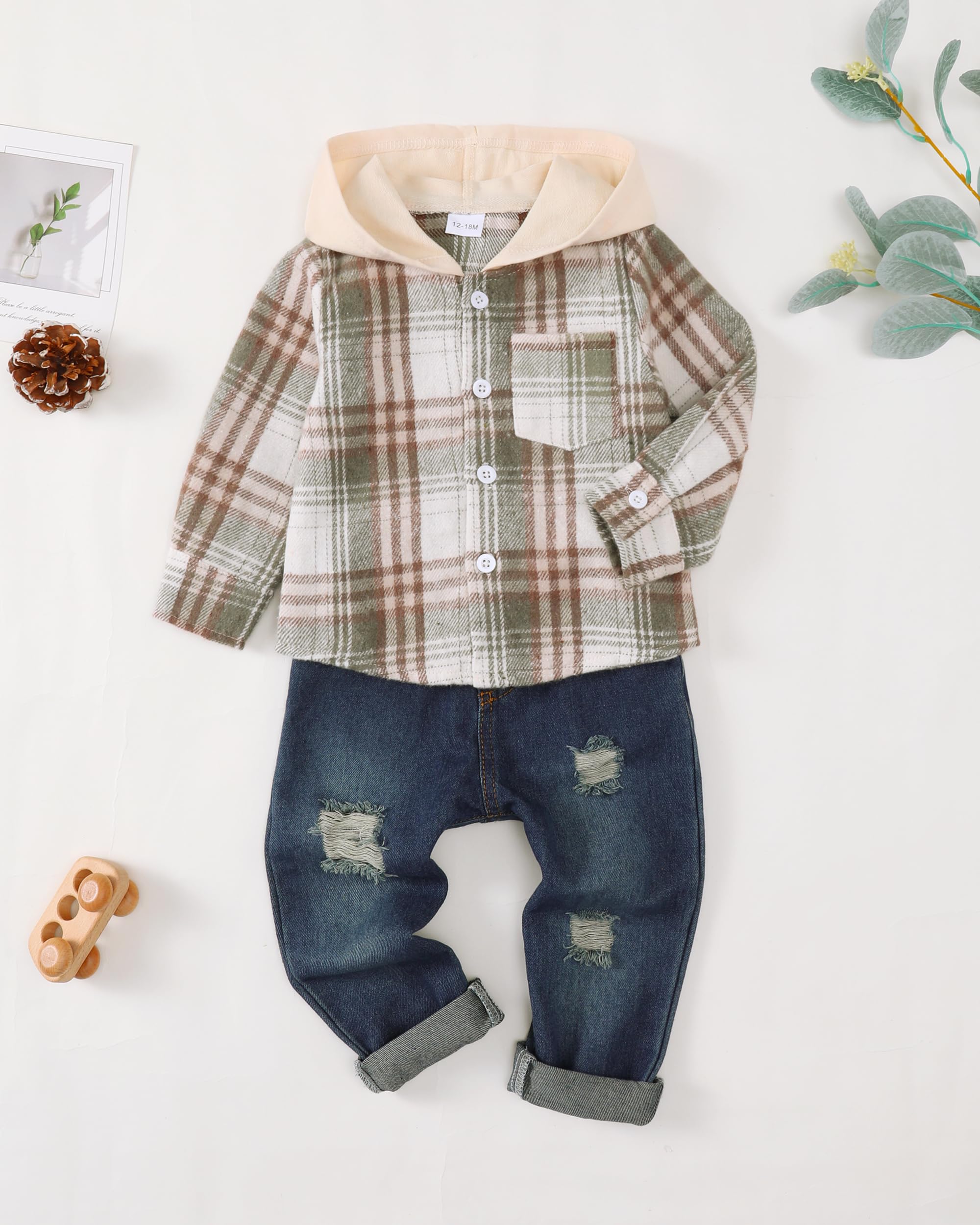 Package: 1 x toddler boy hooded sweatshirt + 1 x ripped denim pants. Hand wash is suggested at the first time. The toddler outfits boy do not fade, no shrinking and pilling after machine or hand wash.
