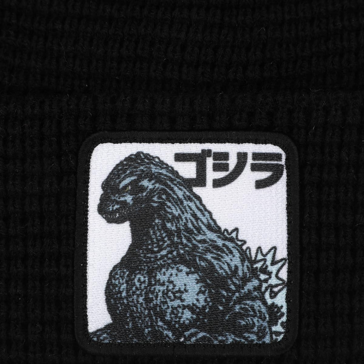 Description Show off your love for the King of Monsters with this black Godzilla cuff beanie. Featuring an embroidered patch of Godzilla beneath kanji letters on the cuff, this beanie adds a bold touch to any outfit. Made from soft acrylic yarn, it's both warm and durable for colder days. To keep your beanie in great shape, simply hand wash it in cold water and lay it flat to dry.
