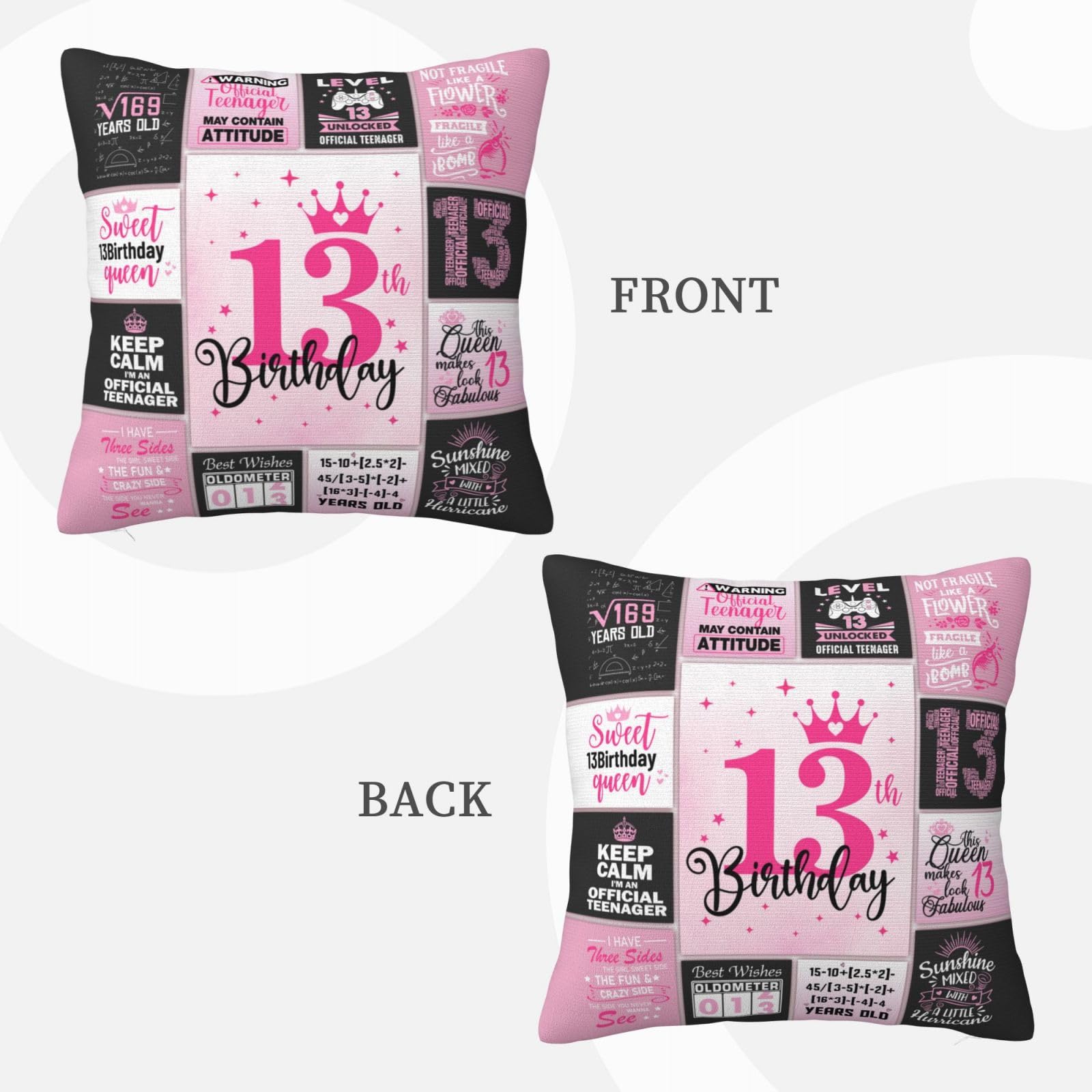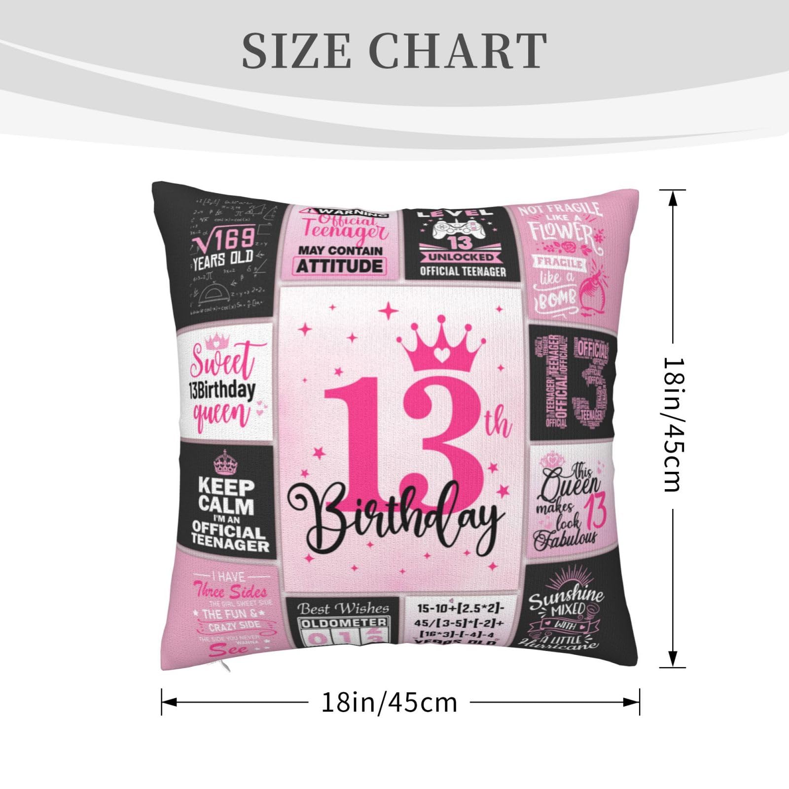 MATERIAL&SIZE: Made of high-quality polyester, soft and comfortable, the size of a happy 13th birthday gift for girls is 18×18 inches/45×45 cm - COVERS ONLY, NO INSERTS