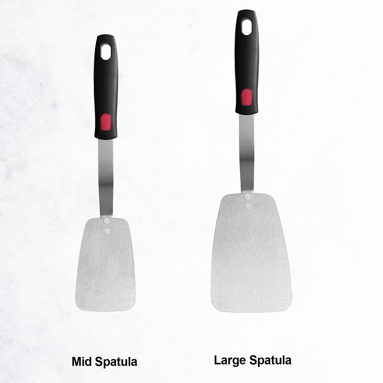 [Heat Resistant Handle] The handle of this flipper is made of heat resistant silicone and stainless steel inside, you can rest it on the edge of cookware without melt, and dishwasher safe