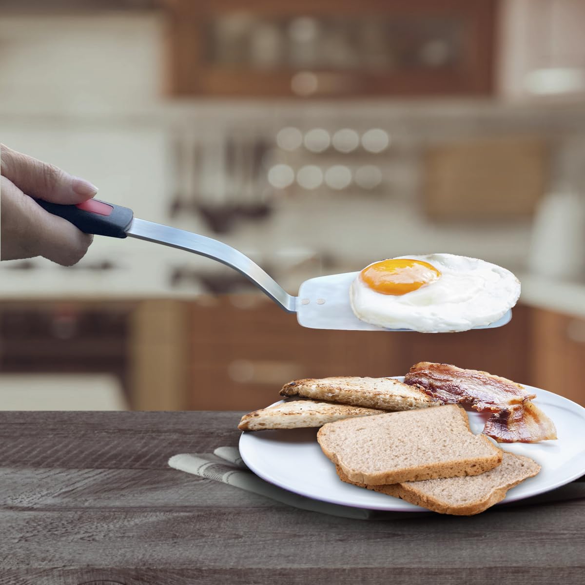 [Flexible & Thin Blade] This metal spatula turner has flexible and thin stainless steel blade, easily slides under foods gently