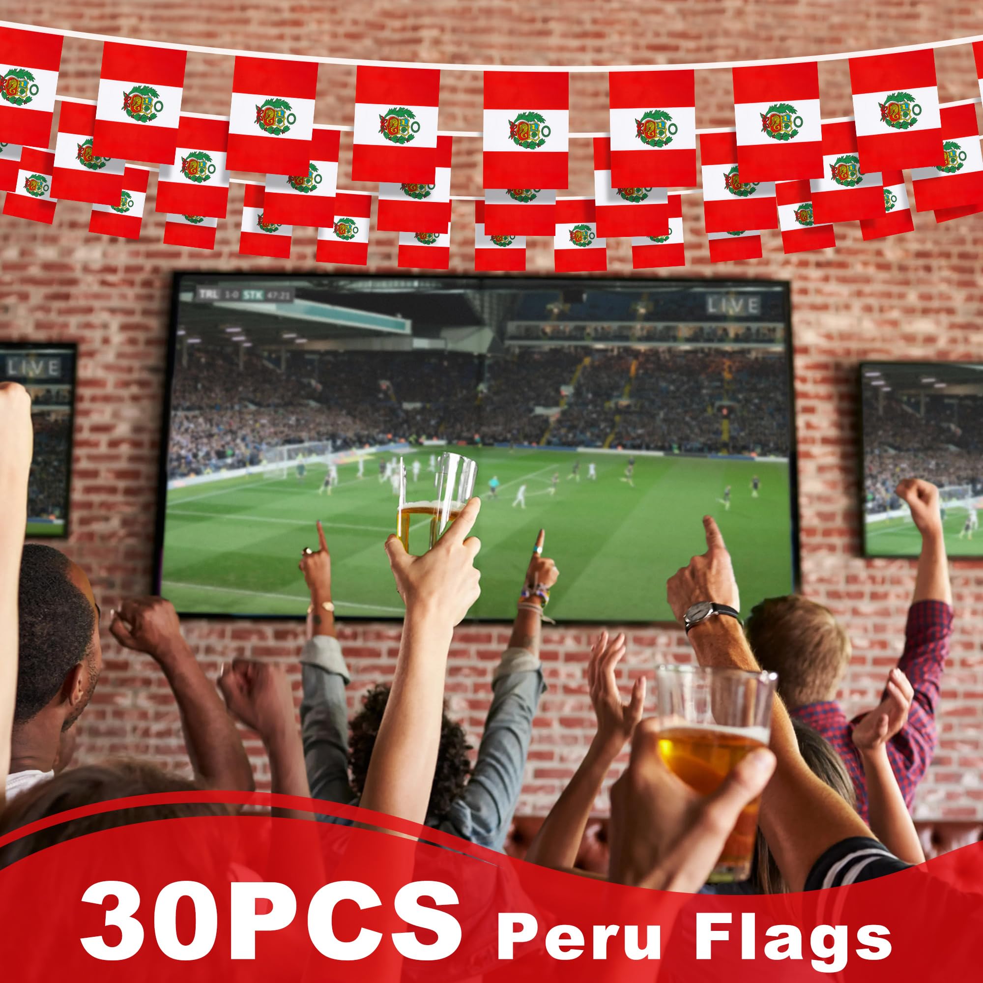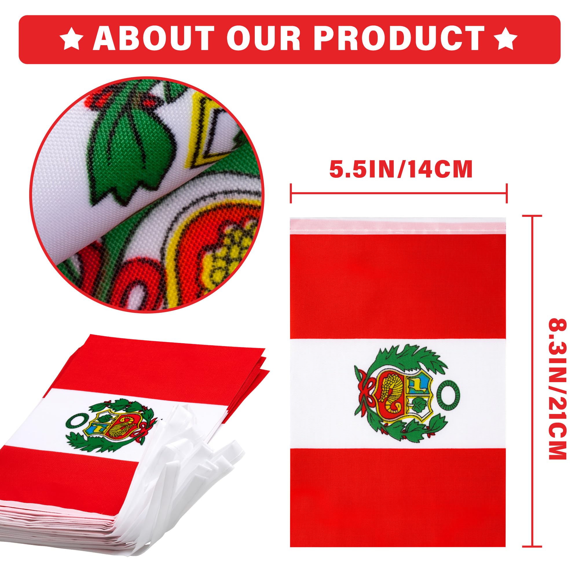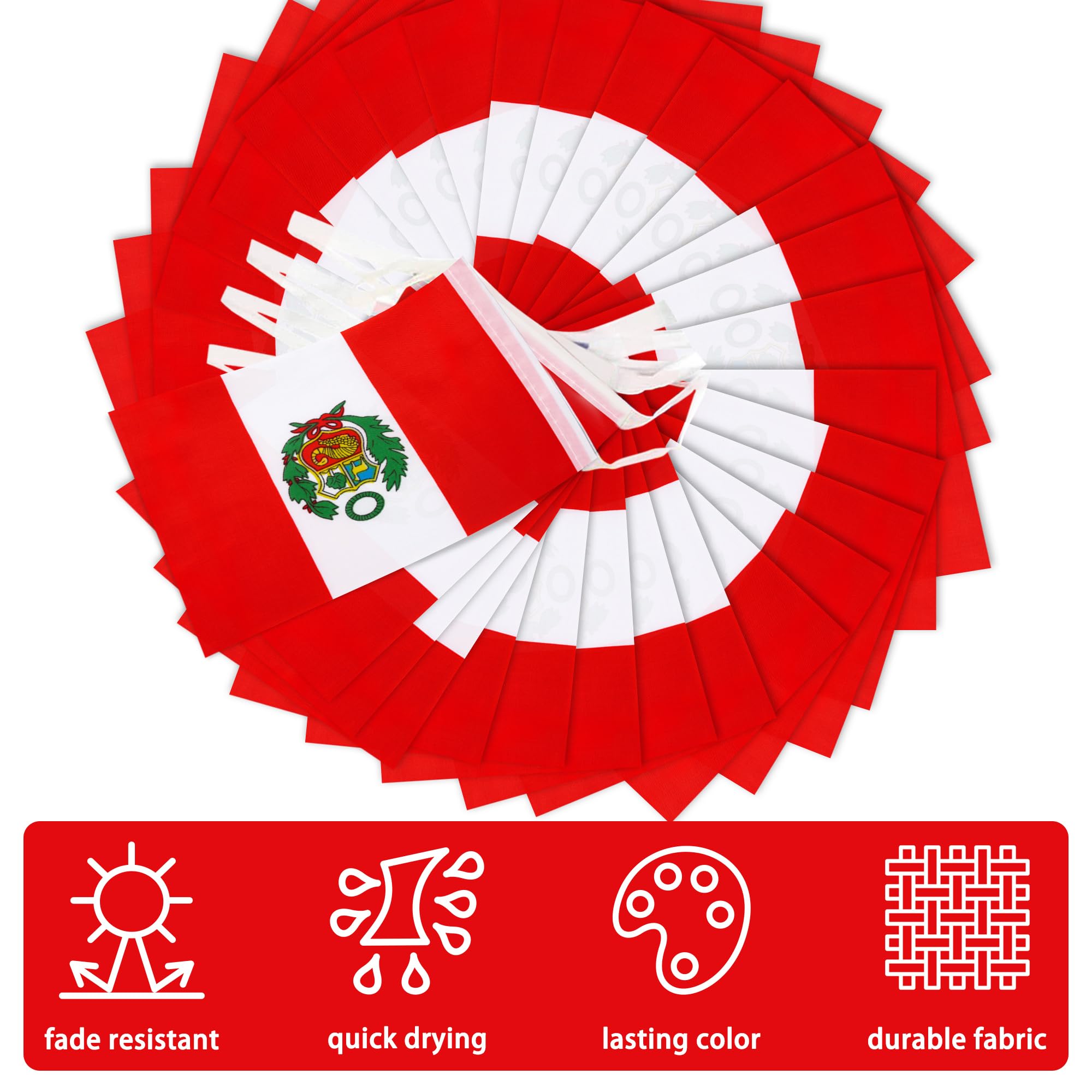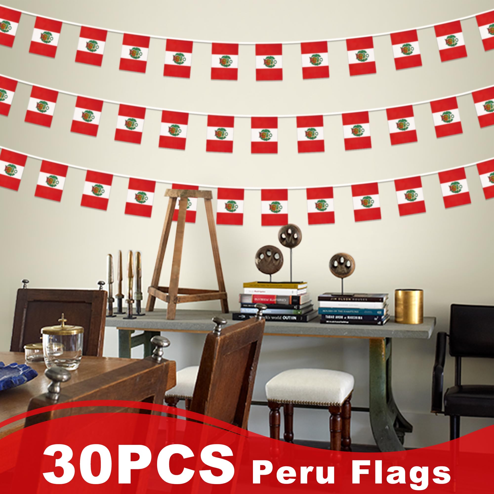 【Specifications】Each string is approximately 33 feet long. Includes 30 pcs Peruvian flags. Each flag is approximately 5.5 in wide and 8.2 in long.