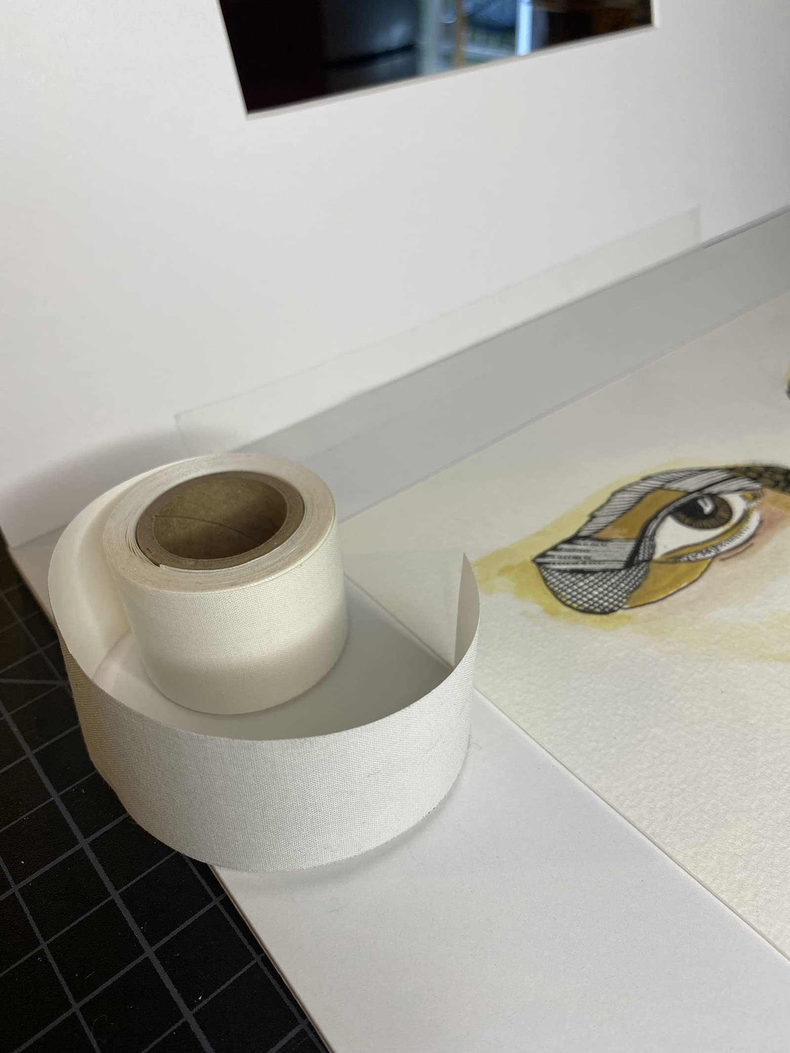 Used as a hinge in framing paper artwork