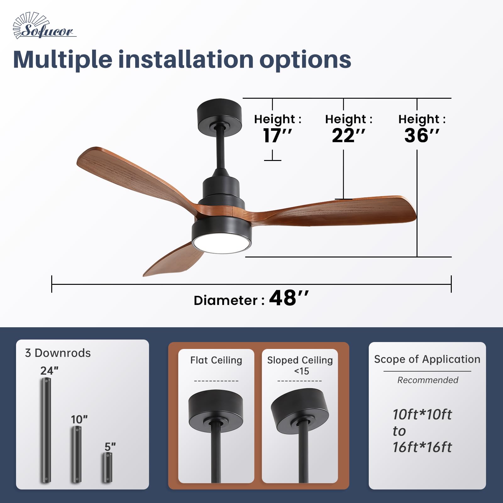 Buy with Confident - Easy self-installation with detailed guides & videos. 24/7 tech support included! Sofucor's ceiling fans are ETL/FCC certified, featuring a lifetime motor warranty and 2-year protection. Choose us for quality and reliability.