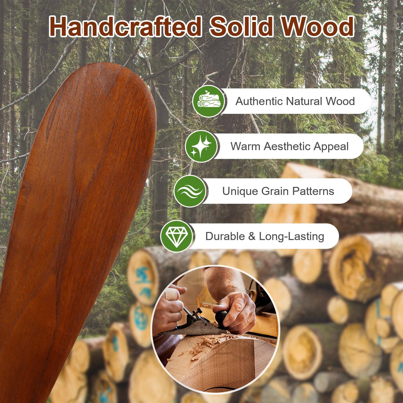 Sophisticated Functionality & Seamlessly Integrated - A fusion of modern design and intelligent engineering. With striking solid wood 3-blades downrod design, generate 4,500 CFM of powerful yet refined airflow, effortlessly circulating air through space up to 16x16ft. Paired with integrated LED, this smart ceiling fan with light transforms rooms into oases of adaptable comfort—whether casting a warm evening glow or delivering refreshing breezes on demand.