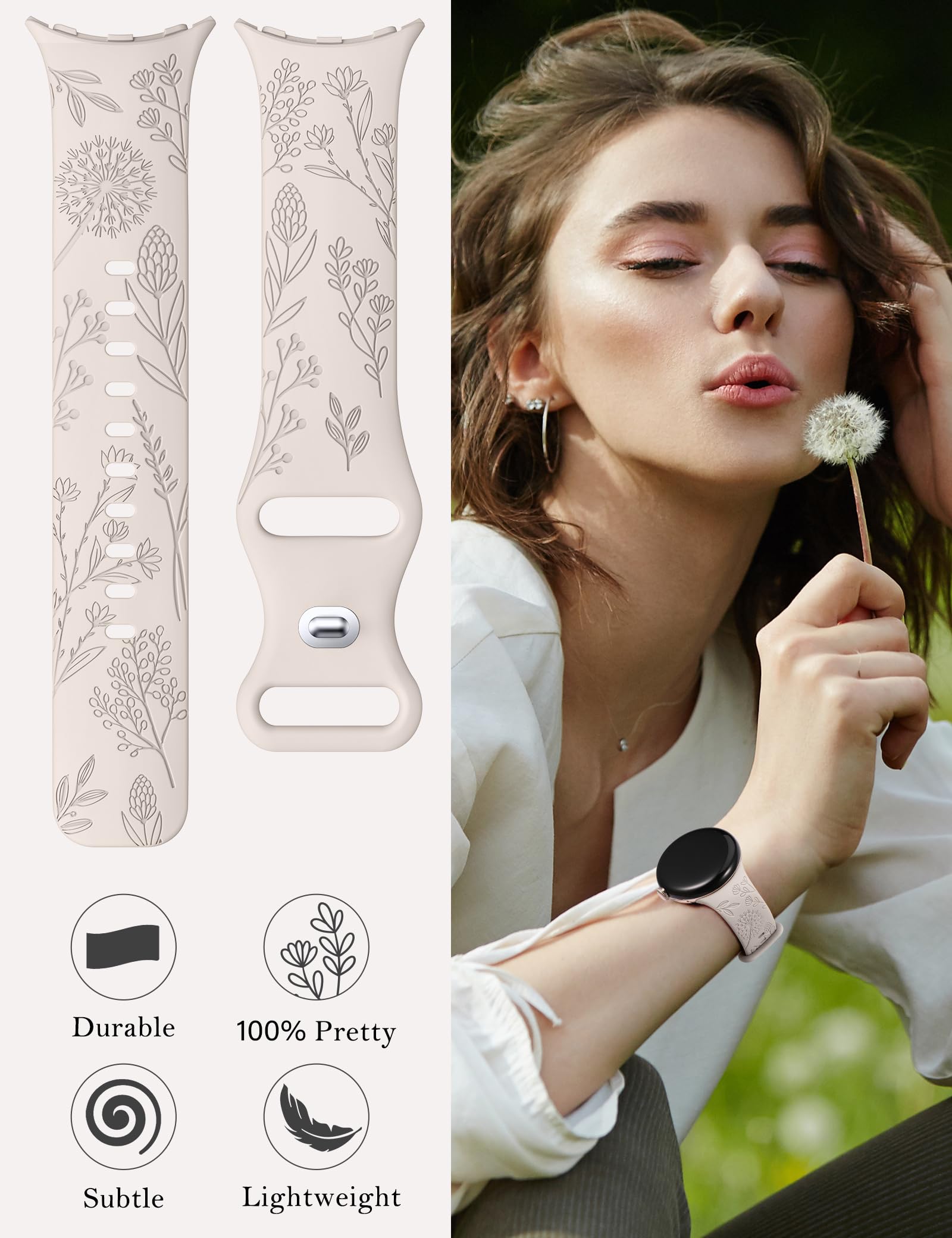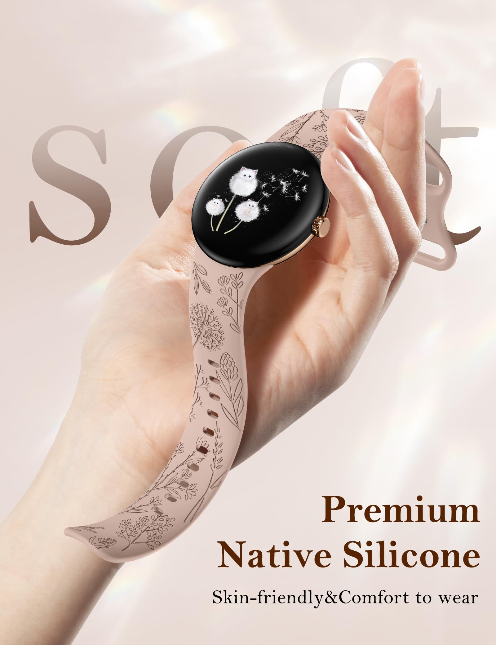 Exquisite Craftsmanship: These sports Google pixel watch 2 bands are made of skin-friendly silicone material, which is soft and comfortable. Utilizing advanced floral printing laser engraving is performed on professional equipment, soft silicone with various flower, and dandelion patterns, high definition. It does not wear off or fade over time, giving you a lightweight, flexible, youthful, and energetic feeling
