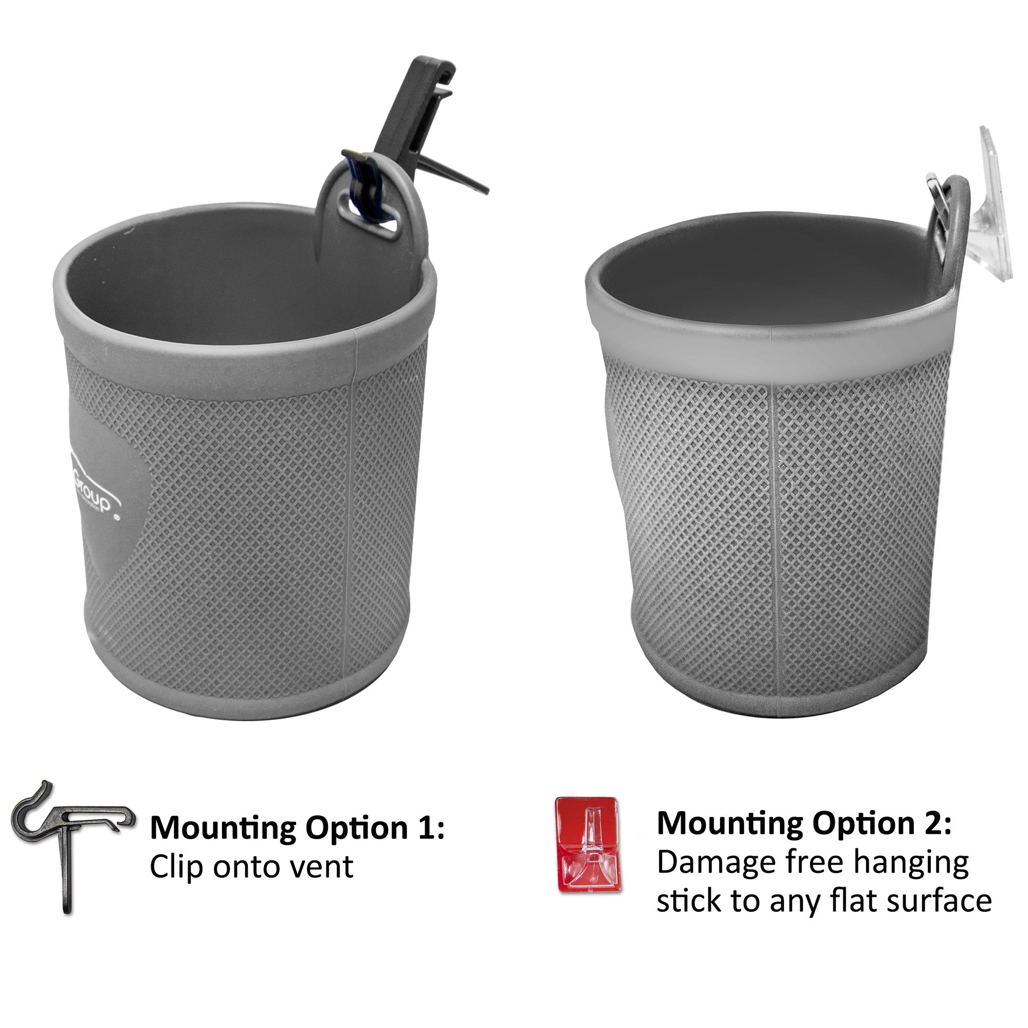Keep your vehicle clutter free with this simple and easy to install silicone cup and cell phone holder. Simply clip right onto your car's air vent or hang on any other flat surface on your vehicle. Great for water bottles, loose change, sunglasses, and other small items that can easily get lost in your car's interior. Our silicone cup holder will keep your car clean and neat and allow you to have everything you need right within arm's reach.