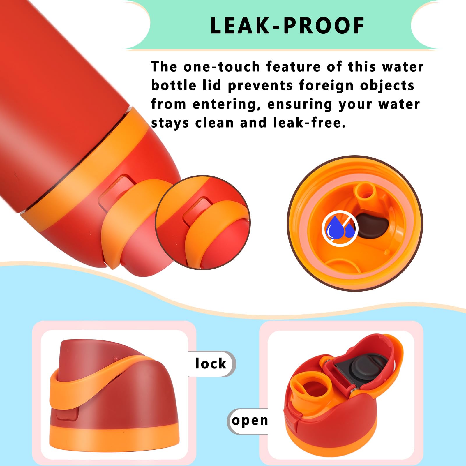 【One-Button Operation】The user-friendly one-button design allows easy opening and closing, catering to a variety of scenarios, whether at the gym, in the office, or outdoors. Perfect for any compatible with Owala lid replacement, this lid keeps your hydration routine effortless and convenient, whether using your for Owala cap on your 32 oz or 46 oz water bottle.