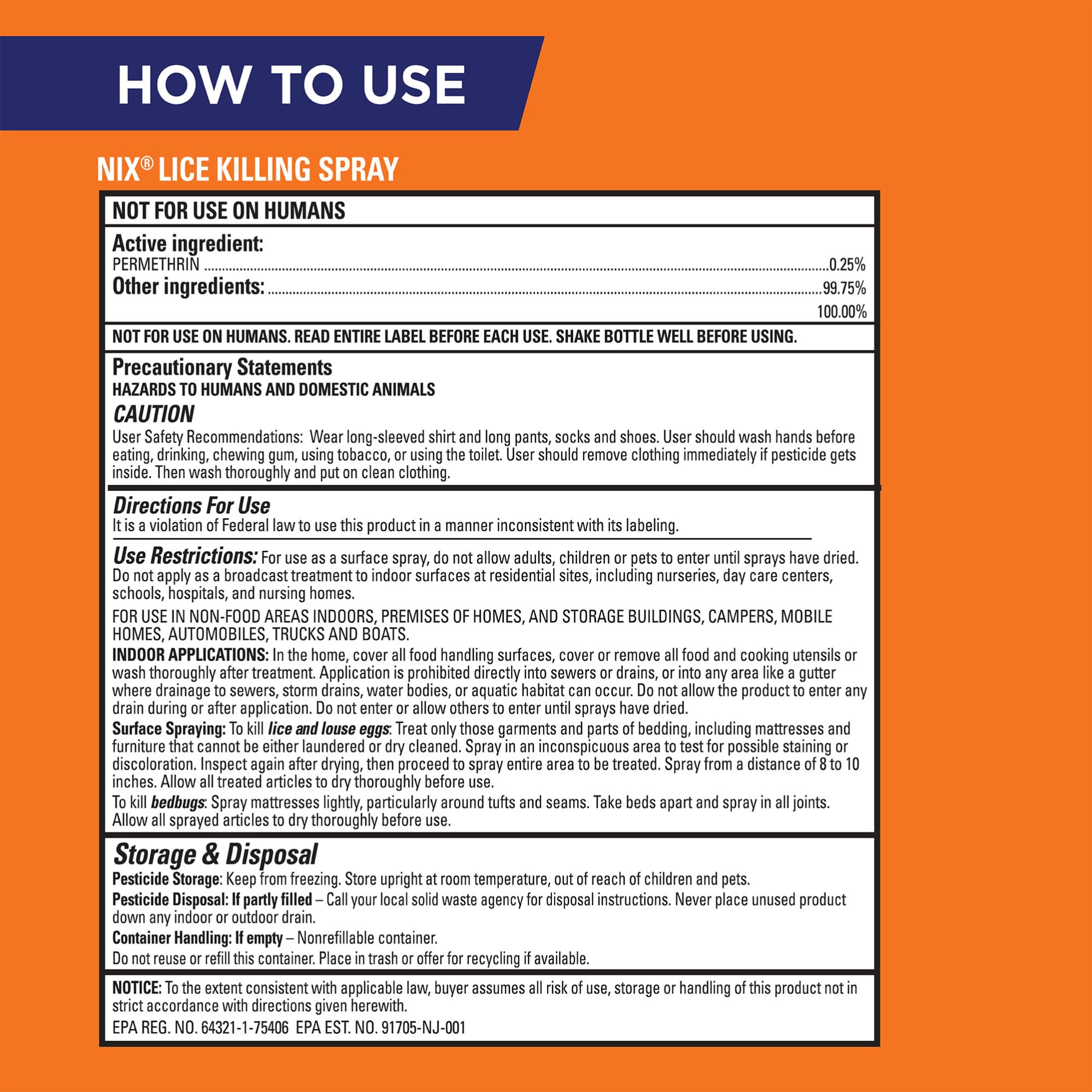LICE & BEDBUGS HOME DEFENSE: The Nix Lice Killing Spray kills lice & bedbugs on furniture and bedding; effective for up to 4 weeks