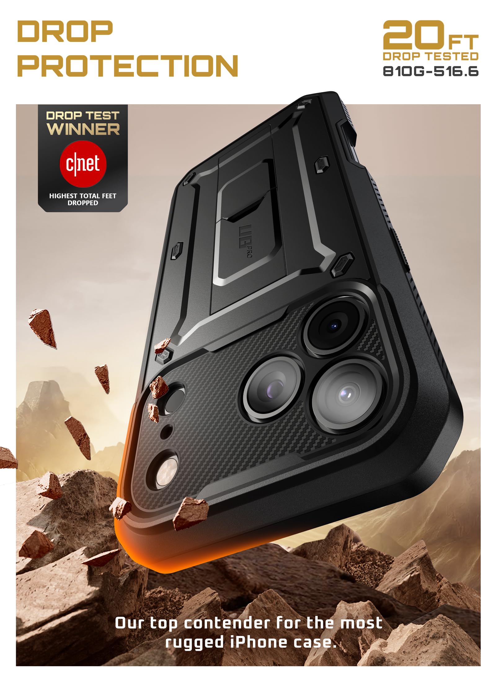 Engineered for Ultimate Defense: Survives drops up to 20 ft (6 m) with military-grade impact resistance (MIL-STD-810H-516.6 certified). Built with a hybrid TPU + PC frame, reinforced corner airbags, and a PET built-in screen protector. Precision-raised edges (1.5 mm camera lip, 2 mm screen lip) and an ultra-slim ~3.94 mm back profile keep your device safe. Includes an additional TPU guard designed to protect the iPhone 17 Pro camera array.